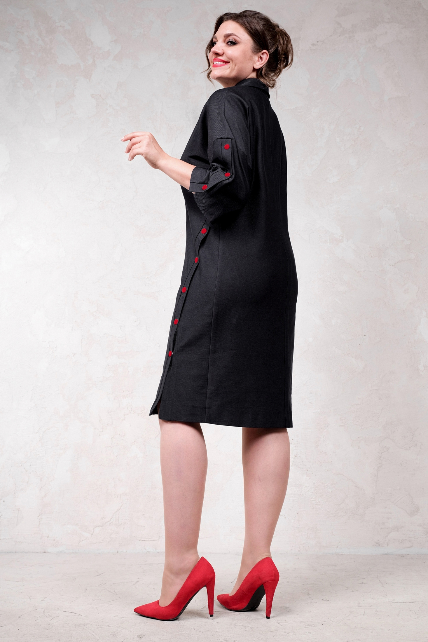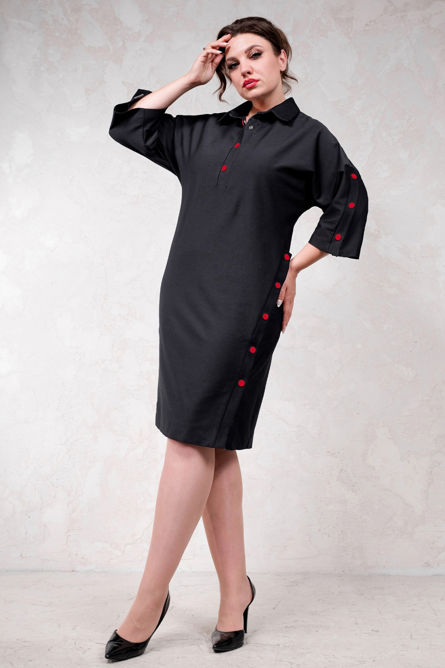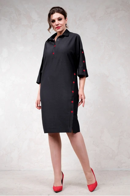 Платье 1660-2 Avanti — изысканное и стильное решение для осенне-зимнего сезона. Коллекция бренда Avanti сочетает в себе элегантность и комфорт, выполненное из вискозы с добавлением полиэстера и эластана. Платье имеет прямой силуэт длиной до колен, дополнено отложным воротником и уникальной застежкой на кнопках, что придаёт образу оригинальности. Черный цвет с декоративными элементами делает его незаменимым для офиса или деловой встречи. Идеально подходит как для повседневного ношения, так и для особых случаев, подчеркивая стиль и уверенность своей обладательницы.
