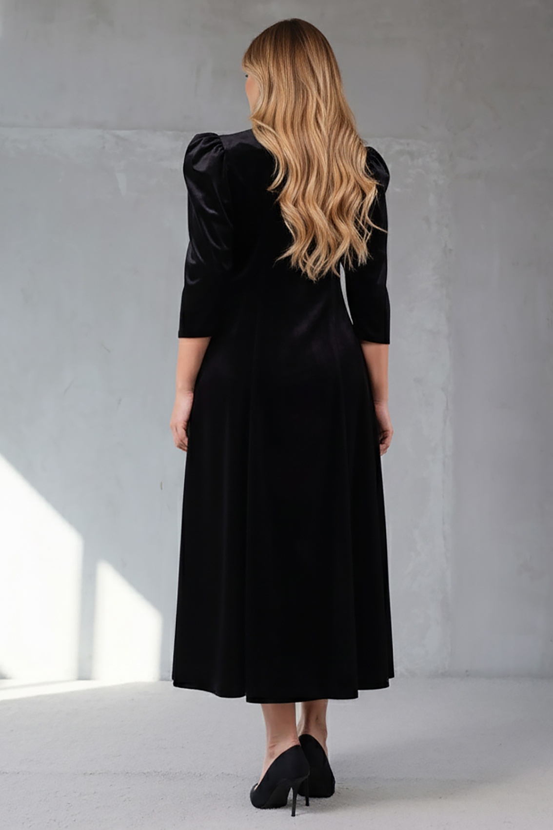 Платье сочетает в себе простоту кроя и роскошь ткани. Отлично подходит для торжеств, ужинов, театра, праздничных мероприятий или любого случая, где нужен элегантный, но не перегруженный образ.
