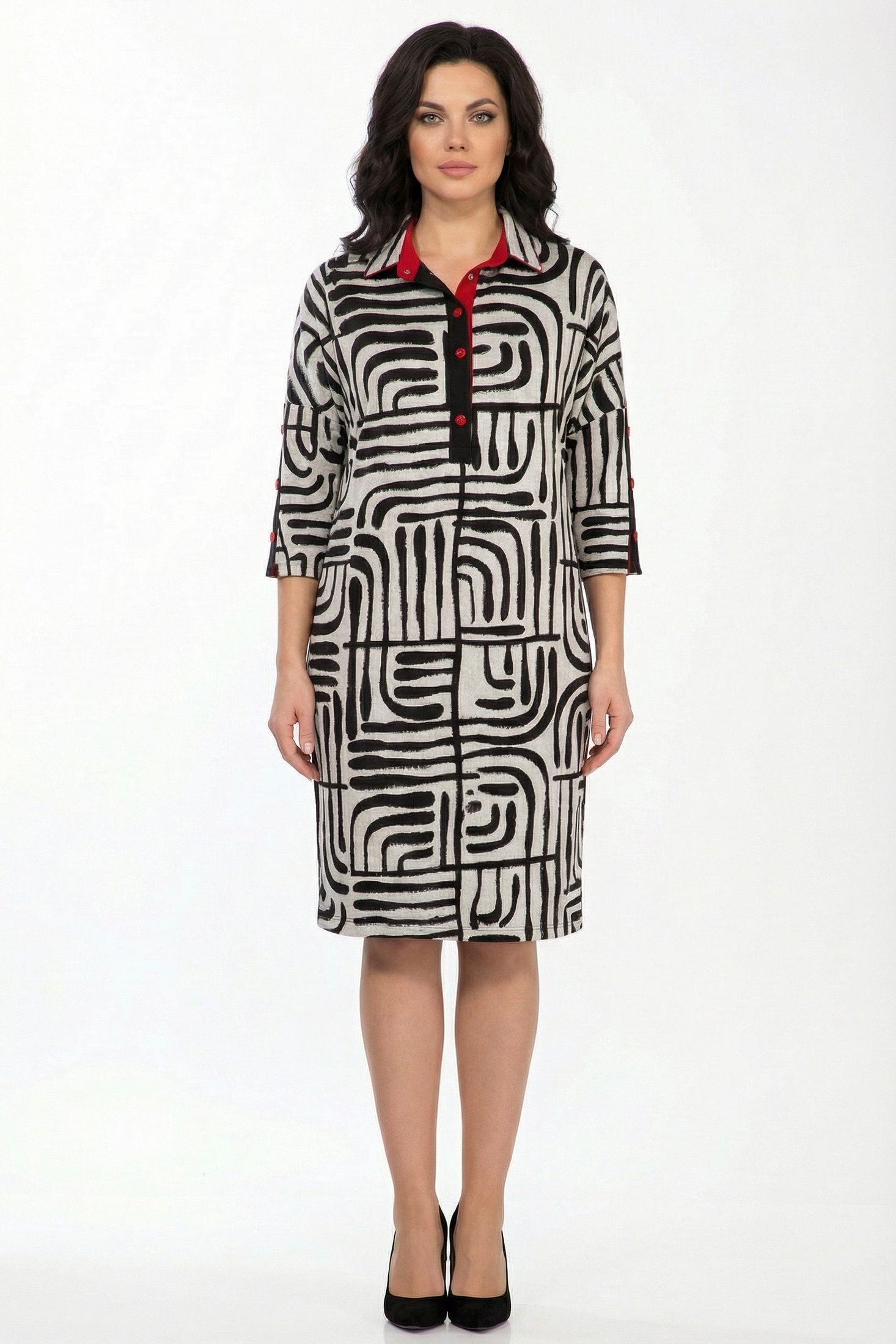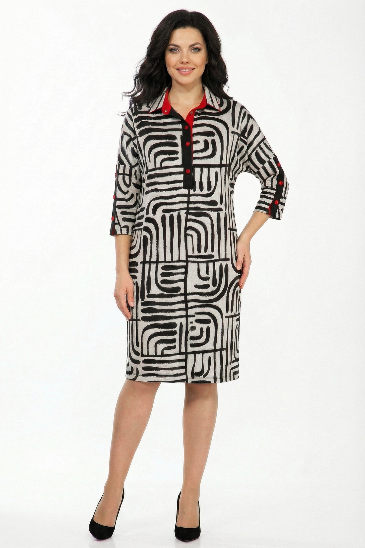 Платье 1747-7 Avanti — это сочетание элегантности и комфорта в одном образе. Коллекция бренда Avanti предлагает платье-рубашку из мягкого эластичного трикотажа, обеспечивающего удобство в каждом движении. Графический узор создает современный стиль для повседневного использования. Свободный крой с цельнокроеными рукавами 7/8 и практичными кнопками впереди делает это платье идеальным выбором для межсезонья. Черно-белая цветовая гамма добавляет универсальности, позволяя комбинировать с различными аксессуарами. Платье идеально подходит для динамичных будней и городской жизни, добавляя нотку элегантности в ваш образ.