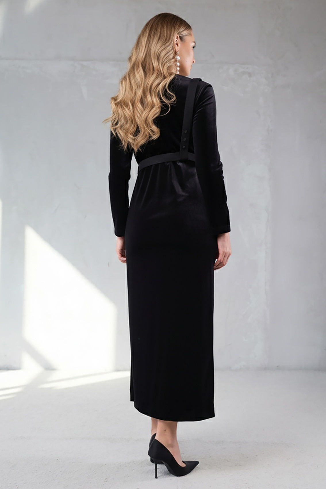 Элегантное длинное чёрное платье в минималистичном стиле. Его особенности: