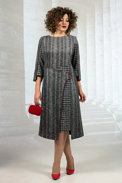 Трикотажное платье полуприлегающего силуэта. Трикотаж эластичный, мягкий. Рукав втачной. Длина 109 см, рукав 50 см.