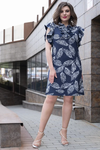 Платье в романтической стиле с рюшами, полуприлегающий силуэт, ткань плательно-блузочная. В боковых швах удобные карманы. Длина 95 см.
