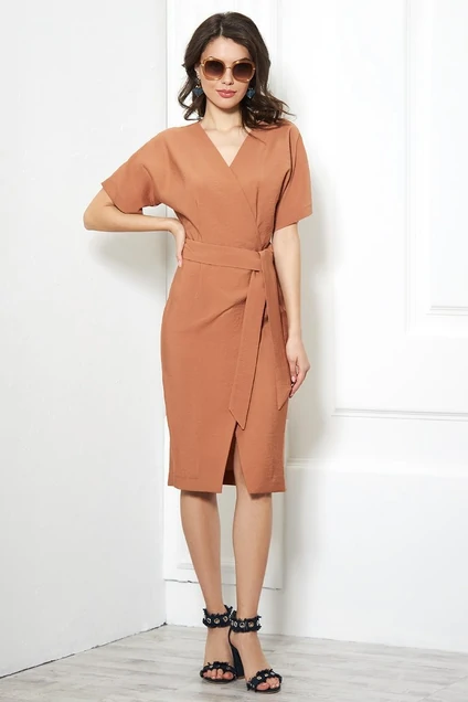 -полуприлегающего силуэта на запах, отрезное по линии талии, V-образная форма горловины;