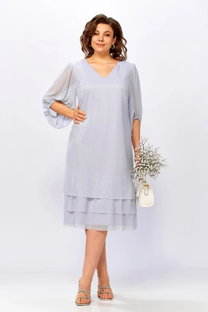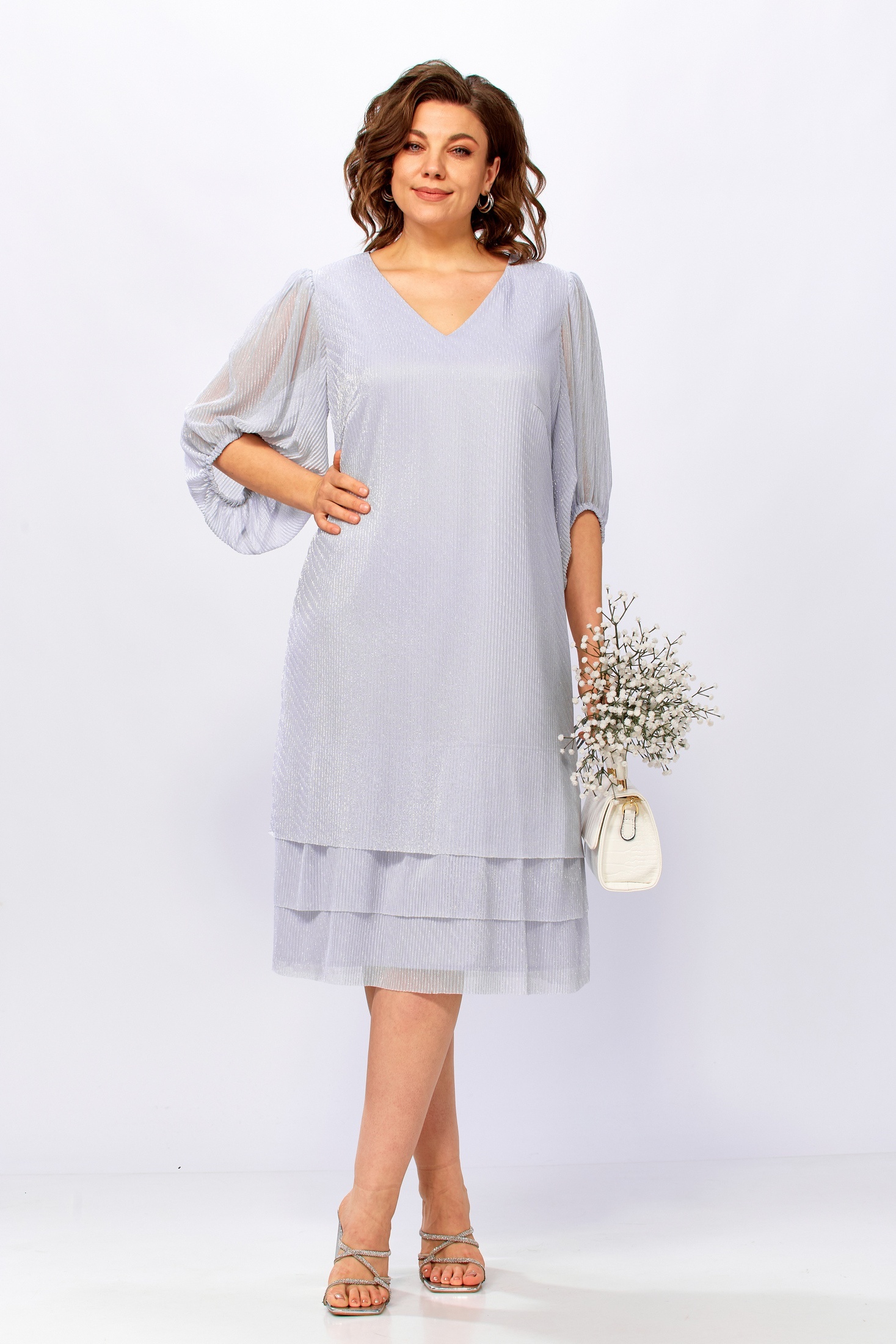 Платье 10058 AZZARA от коллекции бренда AZZARA привлекает внимание своим нарядным и стильным дизайном. Выполненное из плиссированного трикотажного полотна с люрексовой нитью, оно создаёт атмосферу праздника и торжества. Полуприлегающий силуэт, свободный крой и воланы по низу изделия делают платье элегантным и удобным. V-образный вырез и широкие рукава со сборкой придают изысканный шарм. Идеально подходит для торжественных мероприятий в тёплое время года. Красивый голубой цвет подчеркивает свежесть образа и лёгкость стиля.
