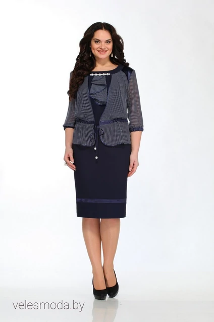Платье женское нарядное, комбинированное из двух видов ткани: шифона и однотона. Имитация двойки, полуприлегающего силуэта, зауженное книзу, вырез горловины круглый, по переду горловины планка, рукав втачной 3/4 шифоновый, по переду и спинке кулиса и пояс. Ширина по линии груди: размер(54):56см; размер(56):58см; размер(58):60см; размер(60):62см; размер(62):64см; размер(64):66см. Ширина по линии бедер: размер(54):59см; размер(56):61см; размер(58):63см; размер(60):65см; размер(62):67см; размер(64):69см. Длина изделия: размеры (54-58): 1,03м; размеры (60-64): 1,06м. Длинна рукава: размеры (54-58): 44см; размеры (60-64):46см.