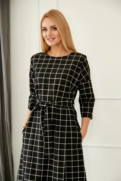 Модель с полукруглым вырезом горловины и рукавами три четверти длины на спущенной пройме создает непринужденно элегантный вид. Длина изделия составляет 121-122 см. Дизайн дополнен удобными карманами в боковых швах и мягкими складками по переднему полотнищу юбки, которые деликатно струятся с каждым вашим шагом. Застежка на молнию по среднему шву спинки обеспечивает идеальную посадку. Подчеркнуть талию поможет стильный пояс из той же ткани. Рукав длиной 45 см добавляет изысканной практичности модели.