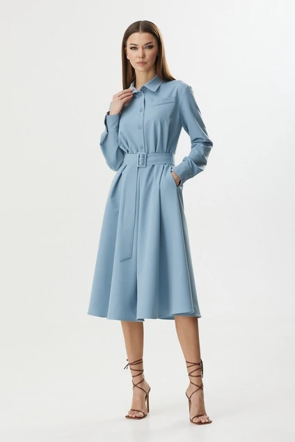 Элегантное женское платье из текстильной ткани. Платье отрезное по линии талии, юбка расширена к низу, в боковых швах карманы.