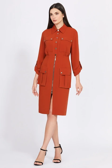 Это модное платье добавит стиль в вашу повседневную жизнь. Серебряная молния и пуговицы добавляют изысканность, а накладные карманы, слегка спущенные рукава с патами, рубашечный воротник и отделочные строчки придают образу спортивный,крутой штрих. Свободный лиф платья позволяет чувствовать себя комфортно, а приталенная юбка и разрез придают платью женственный характер. Модель, выполненная из приятной, однотонной ткани, универсальна и отлично смотрится как в повседневных образах,так и в офисе с нестрогим дресс-кодом.