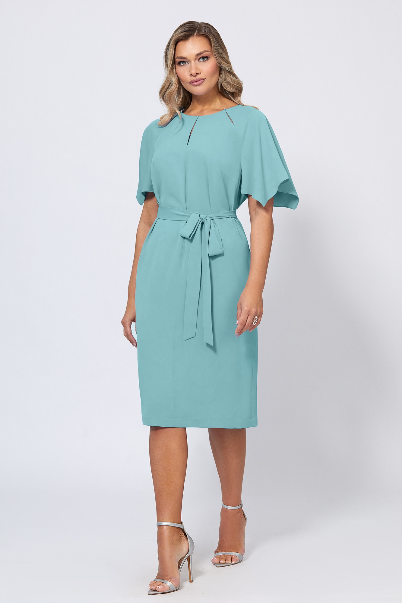 Платье 5044 фисташка от Bazalini станет незаменимым элементом вашего гардероба. Коллекция бренда предлагает изделие из приятной на ощупь ткани, состоящей из полиэстера и вискозы, что обеспечивает лёгкость в уходе и элегантное струящееся движение. Прямой крой и пояс-завязка позволяют подчеркивать вашу талию. Особенность дизайна — мерцающие кристаллы на декольте и рукава-крылышки, добавляющие романтики. Фисташковый цвет и миди-длина делают это платье идеальным для тёплых весенних и летних вечеров. Подходит для свидания, вечеринки или торжества, подчёркивая ваш стиль и индивидуальность.