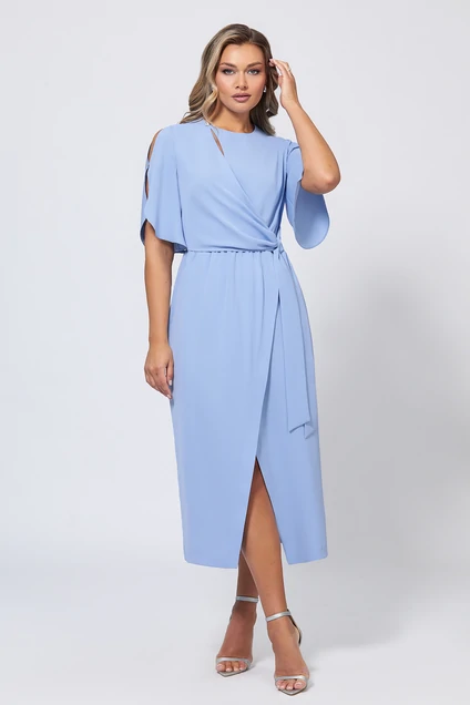 Платье 5059 голубой Bazalini — это воплощение нежности и стиля для создания выразительного нарядного образа. Коллекция бренда Bazalini радует мягкой тканью на основе вискозы и полиэстера, обеспечивающей комфорт и лёгкость при носке. Фасон с имитацией запаха, акцентированной талией и рукавами-воланами придаёт модели воздушность и женственность. Каплевидный вырез с пуговицей-стразиной и изысканный разрез делают образ элегантным и утончённым. Нежный голубой цвет и лёгкий материал подходят для весенне-летнего сезона, создавая ощущение свежести и лёгкости. Это идеальный выбор для праздничных мероприятий и элегантных выходов.