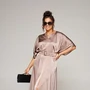 Мы представляем вашему вниманию легкое, нарядное, элегантное платье. Данная модель будет уместна для деловой встречи, а также для неформальных мероприятий разного рода. Платье женское, в нарядно-романтическом стиле; отрезное по линии талии; выполнено из лёгкой, струящейся плательной ткани. Передняя верхняя часть платья разрезная по среднему шву, в верхней части которого расположен небольшой треугольный разрез. Спинка разрезная по среднему шву, в который вставлена длинная, потайная молния. Конструкция верхней части платья выполнена в свободном стиле со спущенной линией плеча и глубокими складками на линии талии. Нижняя, передняя часть платья свободного кроя, состоит из 4-х клиньев с центральным разрезом спереди. Задняя, нижняя часть состоит из 2-х клиньев. Горловина округлой формы. Рукав цельнокроеный, объёмный, со спущенной линией плеча. В комплекте к платью прилагается широкий пояс на пряжке.