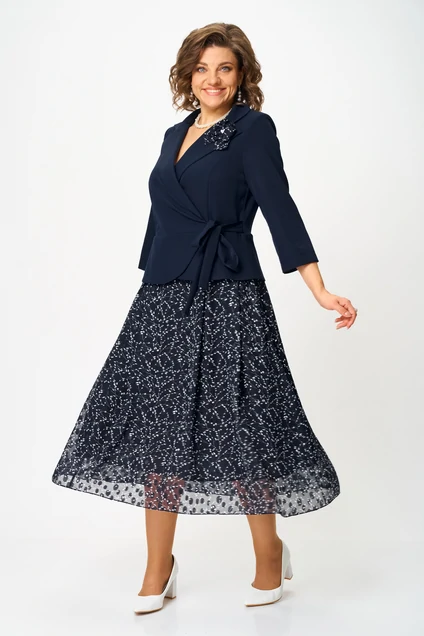 Элегантное женское платье, выполнено в виде имитации костюма из двух видов ткани.