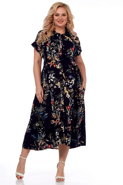 Платье выполнено из мягкой штапельной ткани устойчивой окраски. Рекомендуется вертикальная сушка.