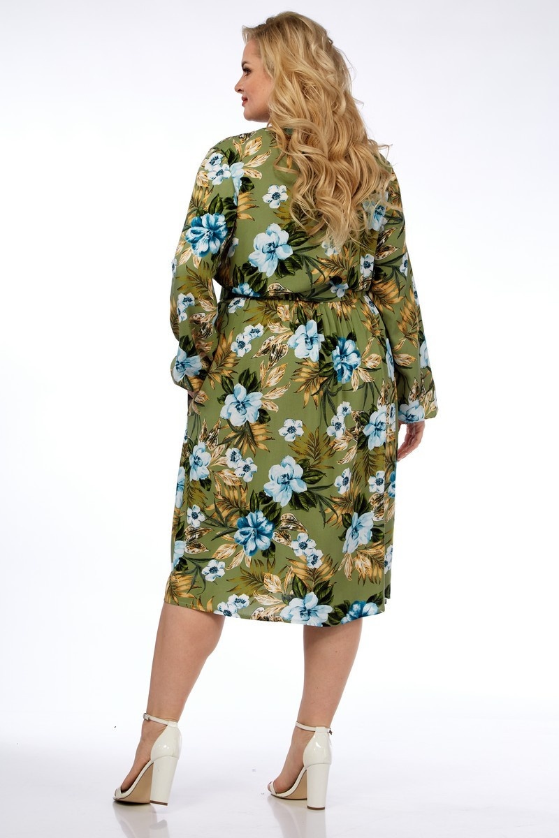 Платье выполнено из мягкой штапельной ткани устойчивой окраски.