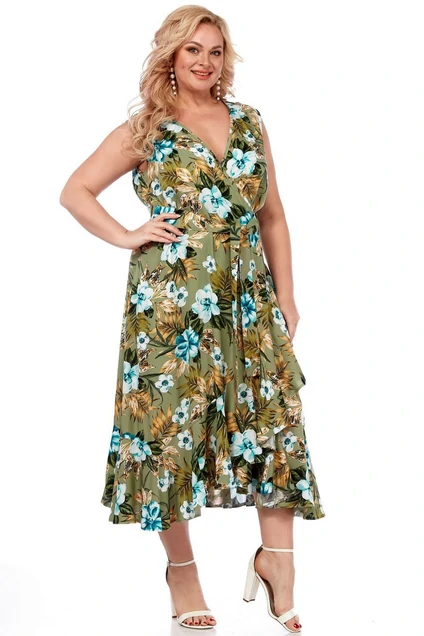 Платье выполнено из мягкой штапельной ткани устойчивой окраски. Рекомендуется вертикальная сушка.