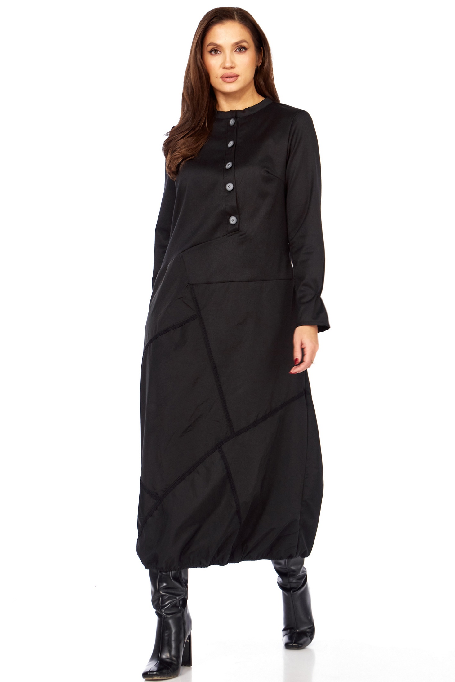 Выполненное из мягкой, струящейся ткани глубокого черного цвета, это платье не только выглядит эффектно, но и дарит невероятный комфорт в движении. Свободный крой идеально скрывает все, что нужно скрыть, и подходит для любого типа фигуры, позволяя вам чувствовать себя уверенно и свободно.