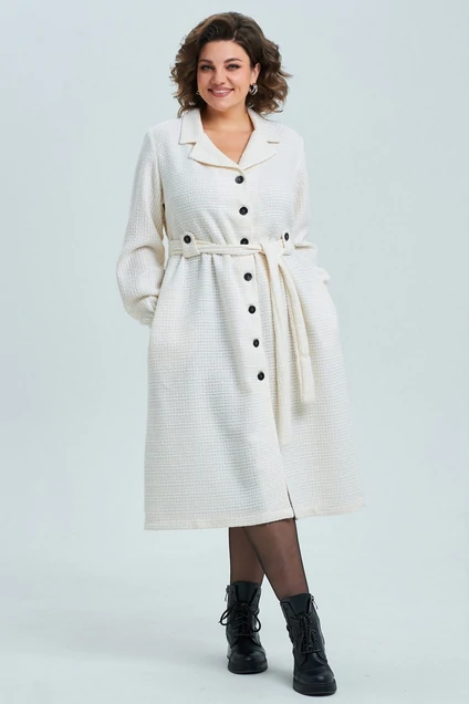 Длина изделия по спинке 117 см., длина рукава 62 см. В комплекте пояс из основной ткани.
