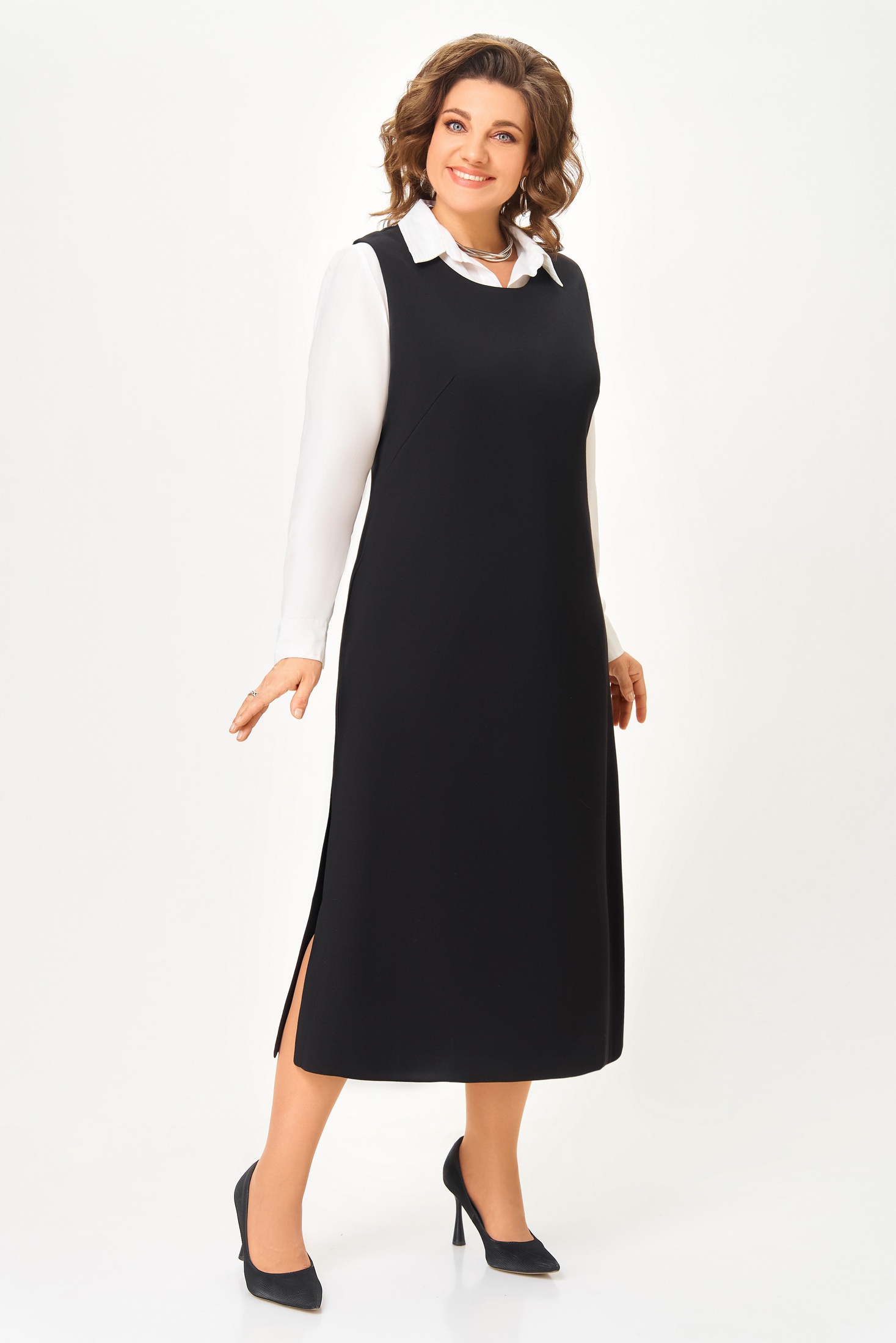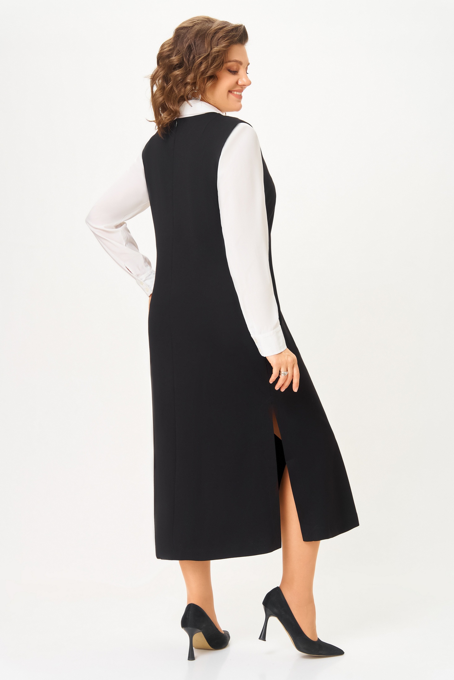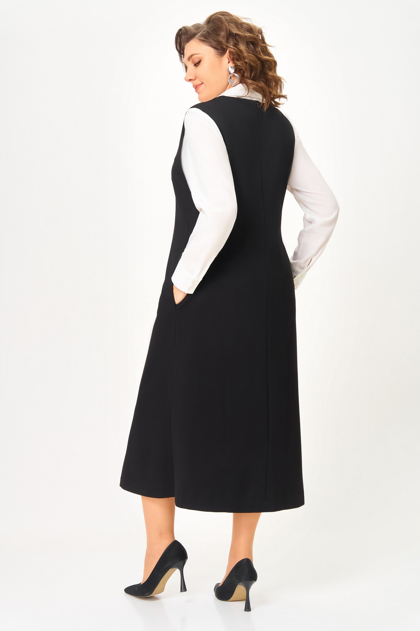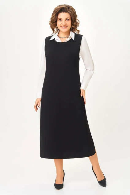 Элегантное платье-сарафан классической миди-длины идеально подчеркивает силуэт, создавая строгий, но женственный образ. Особенностью модели является монохромный черный цвет, который гарантирует универсальность и стиль.Платье без рукавов, идеально сочетается с рубашками или тонкими водолазками, позволяя создать разнообразные комбинации для любого случая. Это платье - превосходный выбор для деловых встреч, офиса или формальных мероприятий, где требуется безупречное сочетание комфорта и стиля. Длина изделия 124 см.