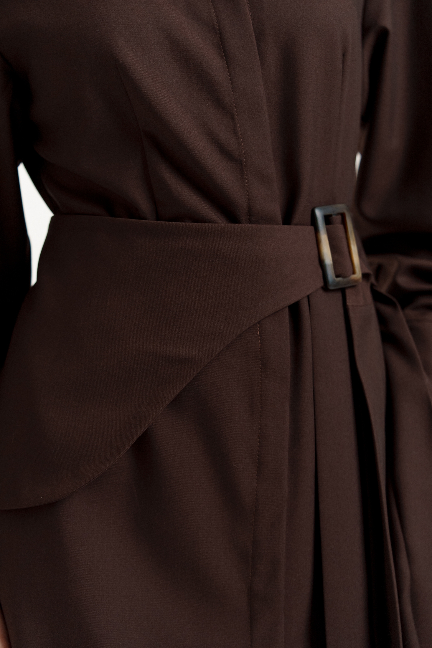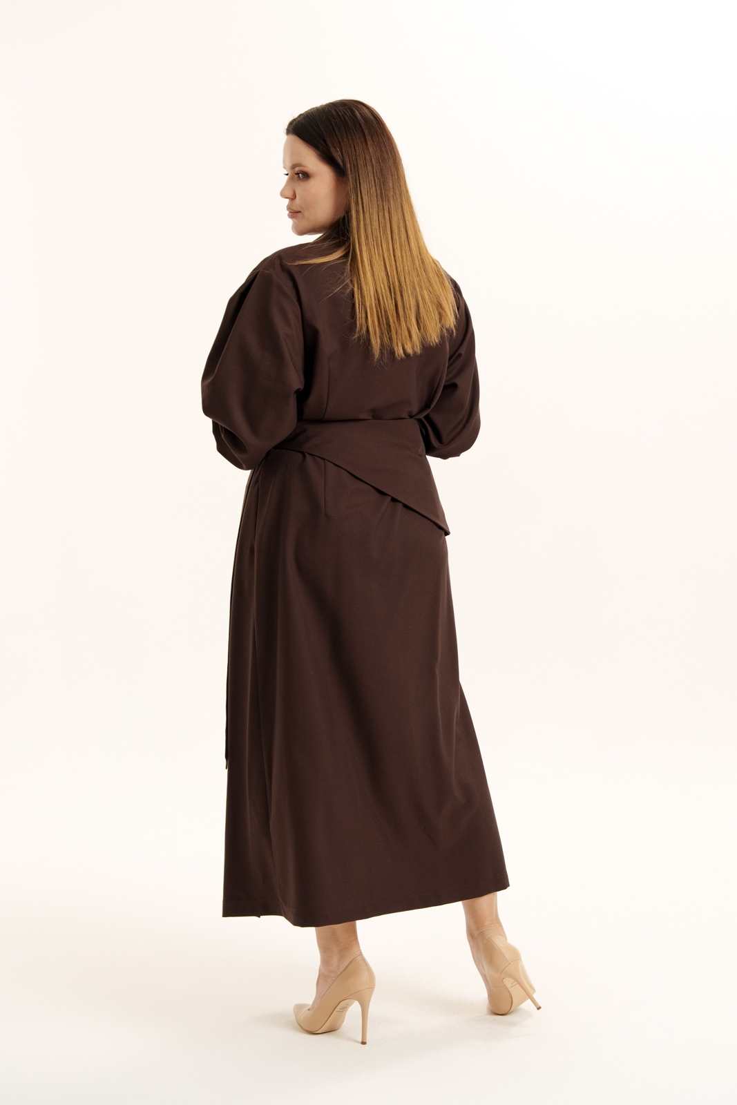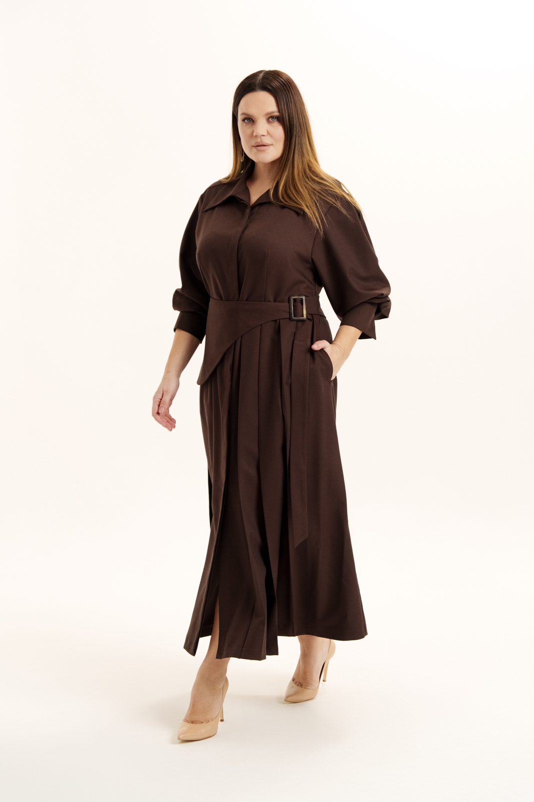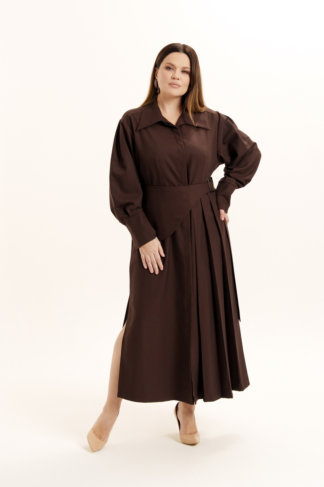 Платье 1295-1 Deesses станет отличным выбором для современного гардероба. Коллекция бренда Deesses предлагает приталенный силуэт, выполненный из костюмной ткани с добавлением вискозы, полиэстера и спандекса для комфорта и эластичности. Это платье с рубашечным воротником и потайной застежкой на пуговицах идеально подходит для осеннего и весеннего сезонов. Стильное решение с отрезной баской, карманами и разрезом добавит изюминку вашему образу. Богатый коричневый цвет подойдёт для офиса или повседневных встреч, подчёркивая вашу элегантность.