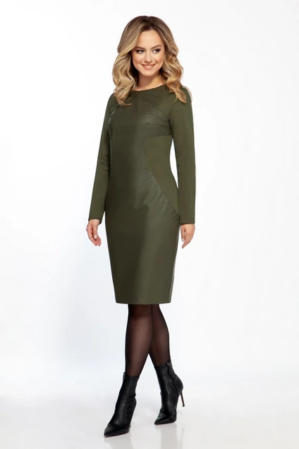 Платье женское прилегающего силуэта из кожи и трикотажа.
