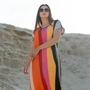 Платье актуального кроя из вискозы со спущенной линией плеча,карманами в боковых швах,разрезом слева.По спинке фигурный вырез,на кокетке-печать. Длина 135см.