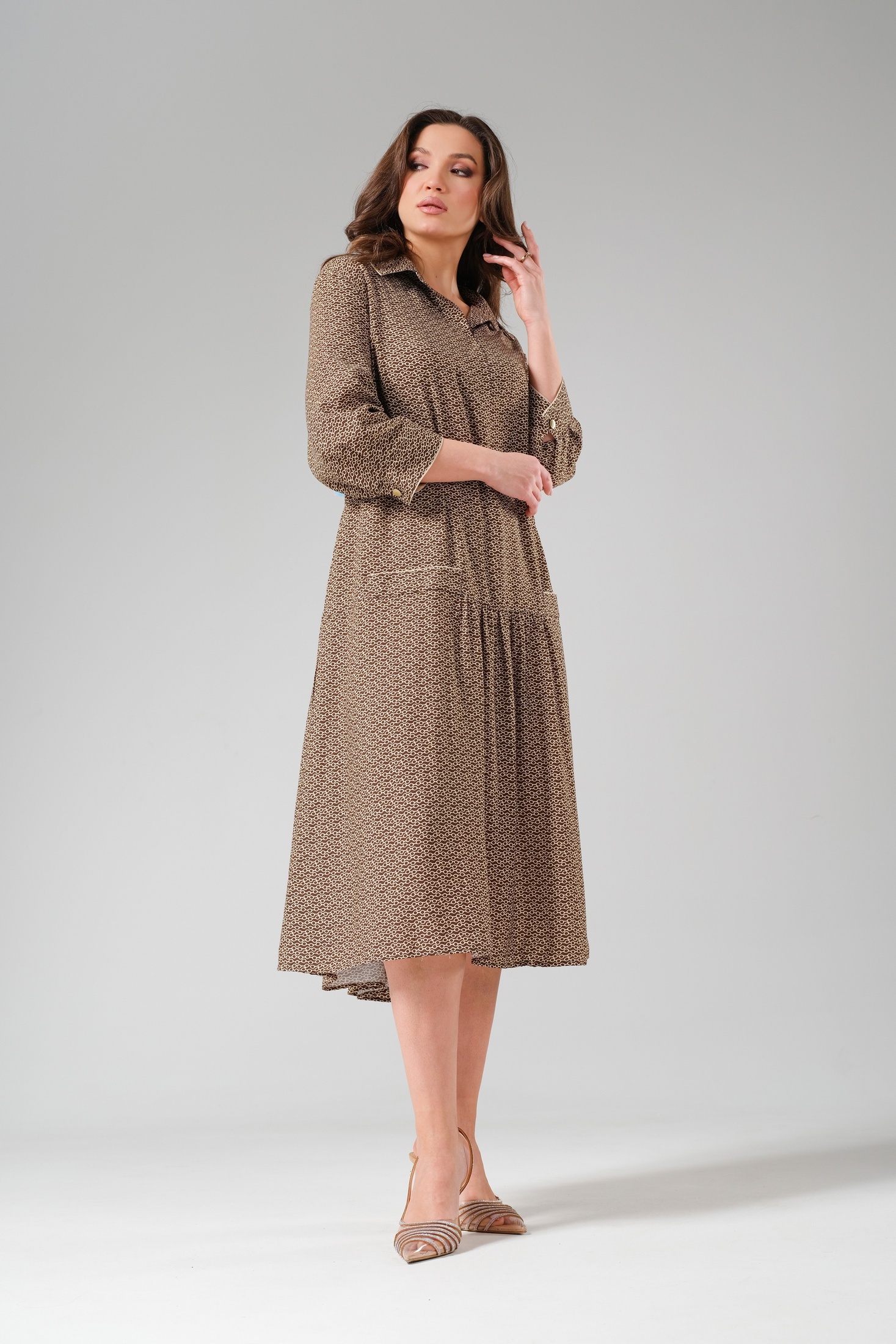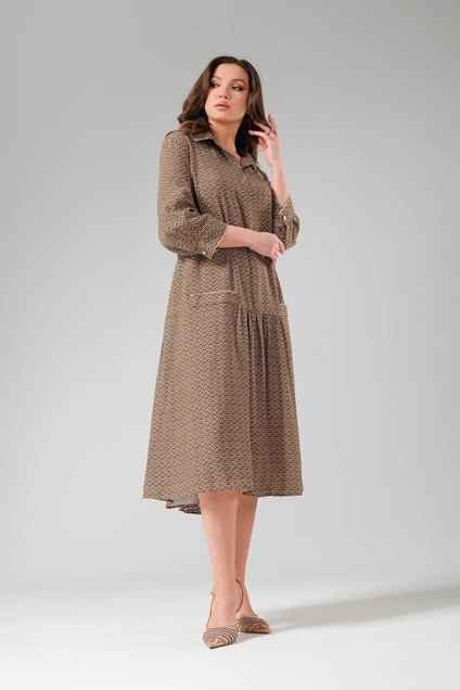 Платье 1621-1 Erika привлекает внимание своим А-силуэтом и миди длиной. Коллекция бренда Erika подчеркивает стильность изделия с воротником-стойкой и рубашечным вырезом. Изготовлено из легкой и дышащей ткани: 72% вискозы, 25% полиэстера, 3% спандекса, что обеспечивает комфорт в любое время года. Практичность добавляют карманы с отделкой контрастным кантом, и втачные рукава длиной 3/4 с манжетами. Идеально подходит для повседневного, офисного или делового гардероба, особенно в сезоны весны и осени.