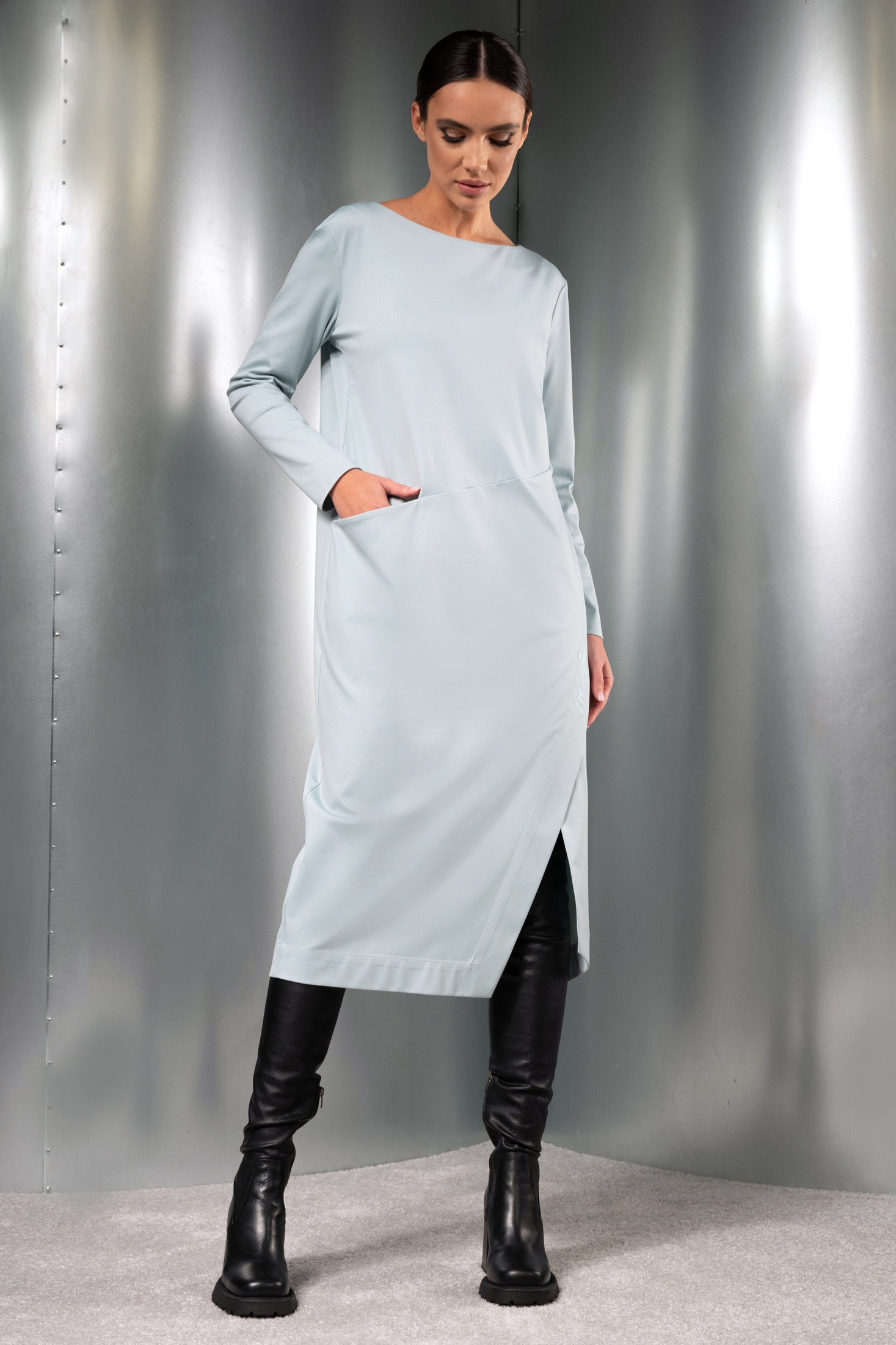 Платье 7375-3 голубой Erika — это выбор для тех, кто ценит стиль и комфорт. Коллекция бренда Erika выполнена из сочетания вискозы и нейлона, что обеспечивает мягкость и эластичность материала. Прямой силуэт платья в сочетании с асимметричным подрезом на линии бёдер создаёт элегантный образ, а функциональный карман добавляет практичности. Платье голубого цвета подходит для весеннего сезона и может быть использовано как для повседневных выходов, так и для работы. Длина изделия — миди, что делает его универсальным для различных мероприятий.