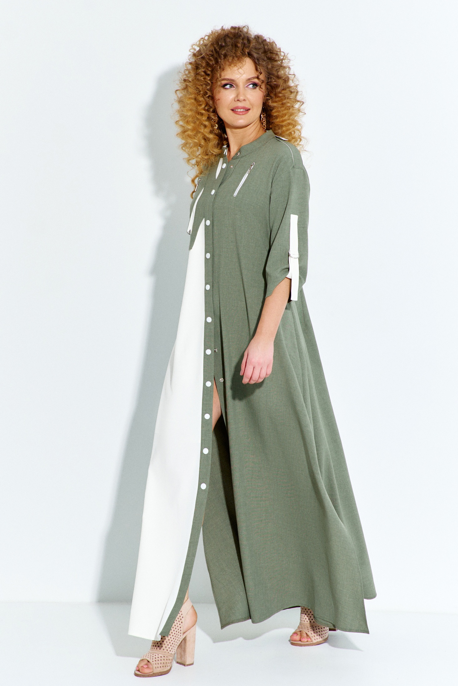 Платье 691 хаки Euro Moda — идеальный выбор для современных женщин. Коллекция бренда Euro Moda предлагает стильное и удобное решение на каждый день. Изготовлено из легкого полиэстера, это платье обладает свободным кроем, создавая комфорт и воздушность. Декоративные накладки с молниями на груди добавляют уникальности, а воротник-стойка и разрезы по бокам подчеркивают современный стиль. Втачные рукава делают его подходящим для весенне-летнего сезона. Хаки и белый цвета формы позволяют сочетать с различными аксессуарами, делая его универсальным для работы и повседневного ношения.