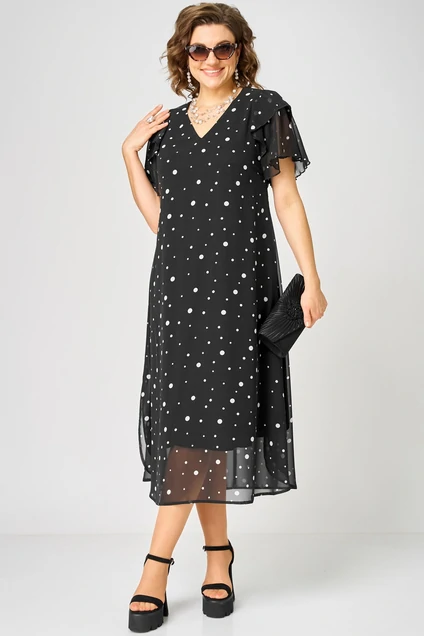 Платье 7116А черный горох EVA GRANT