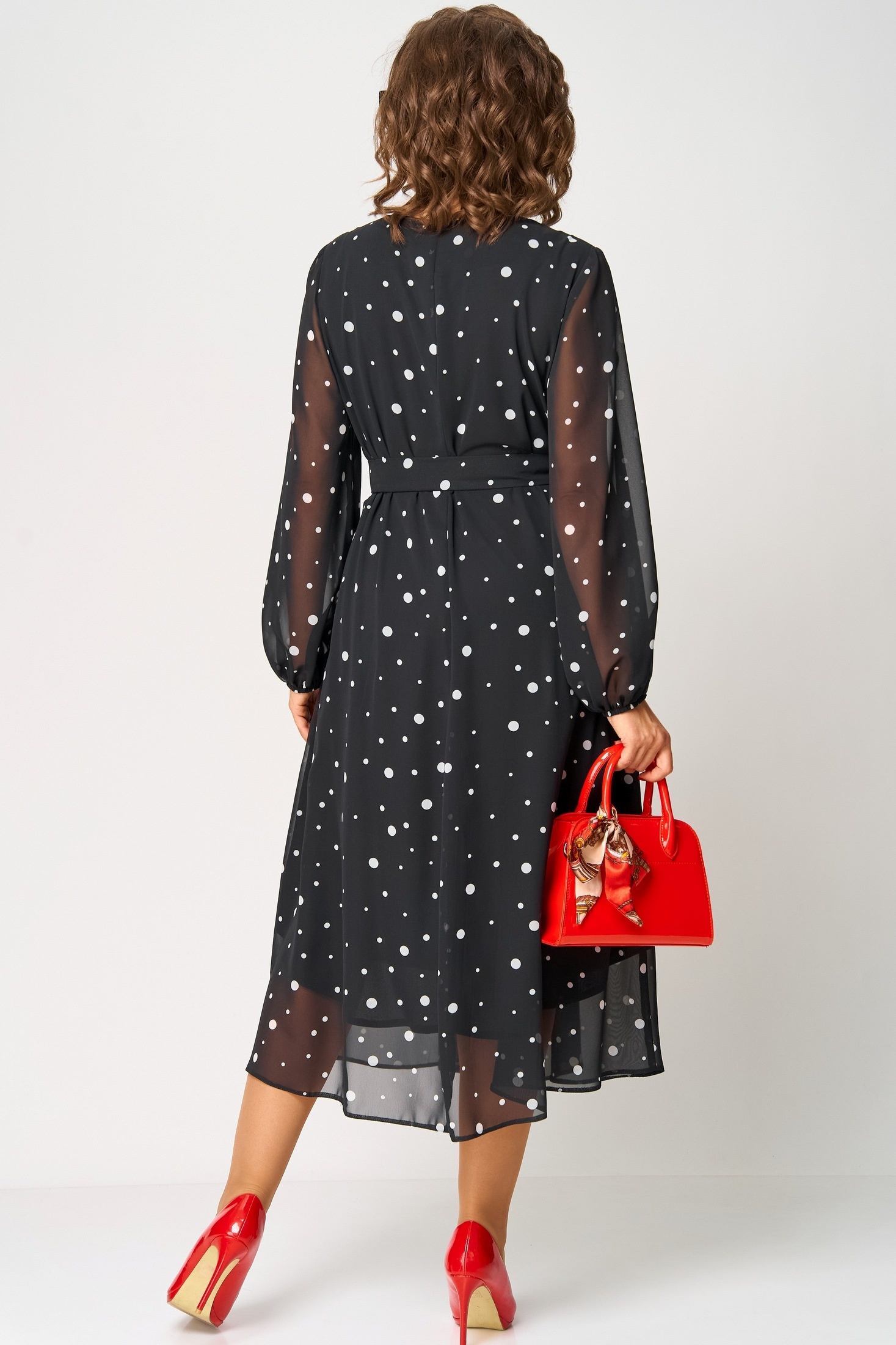 Платье 7177 горох EVA GRANT — это стильное решение для любого гардероба. Коллекция бренда EVA GRANT предлагает это платье из лёгкого шифона с игривым гороховым принтом. Полуприлегающий силуэт и расширенный к низу фасон создают женственный образ. Особенности включают съёмный пояс и декоративные рюши на лифе, добавляющие шарм. Округлый вырез с застёжкой на пуговицу и рукава с резинкой делают платье удобным и стильным. Это нарядное платье идеально подойдёт для повседневного использования в тёплое время года, добавляя элегантности в любой день. Чёрный цвет сгороховым рисунком делает платье универсальным в стиле.
