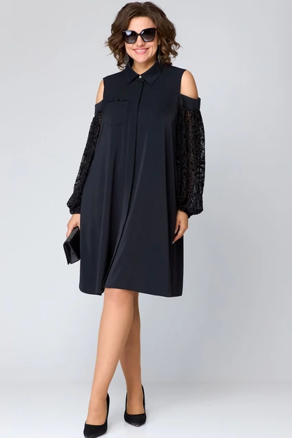 Платье 7216А черный + кружево EVA GRANT