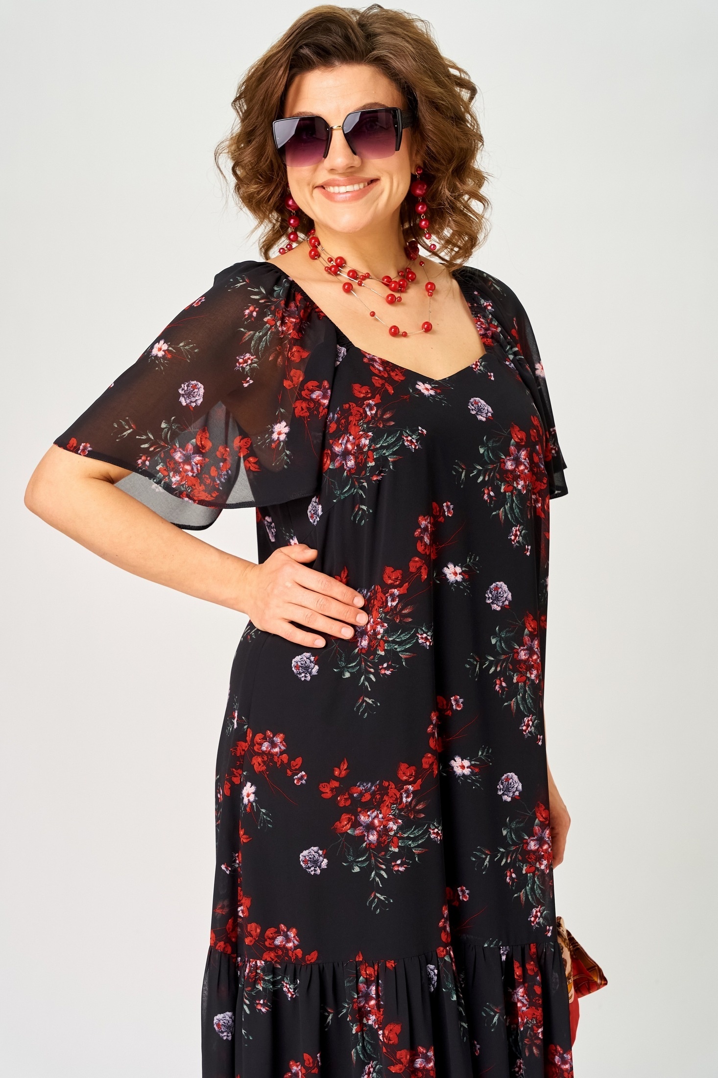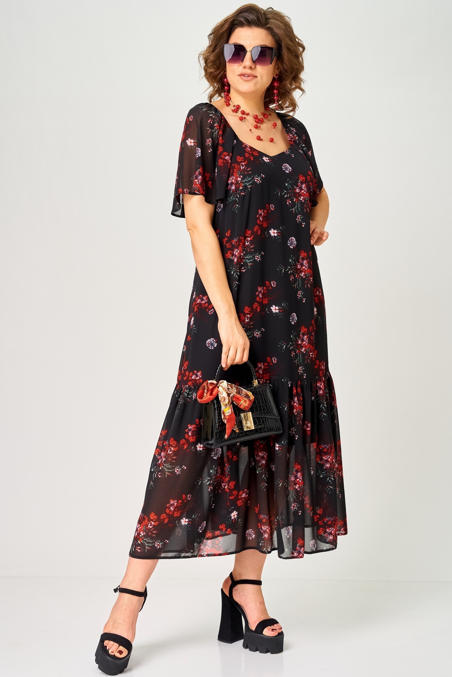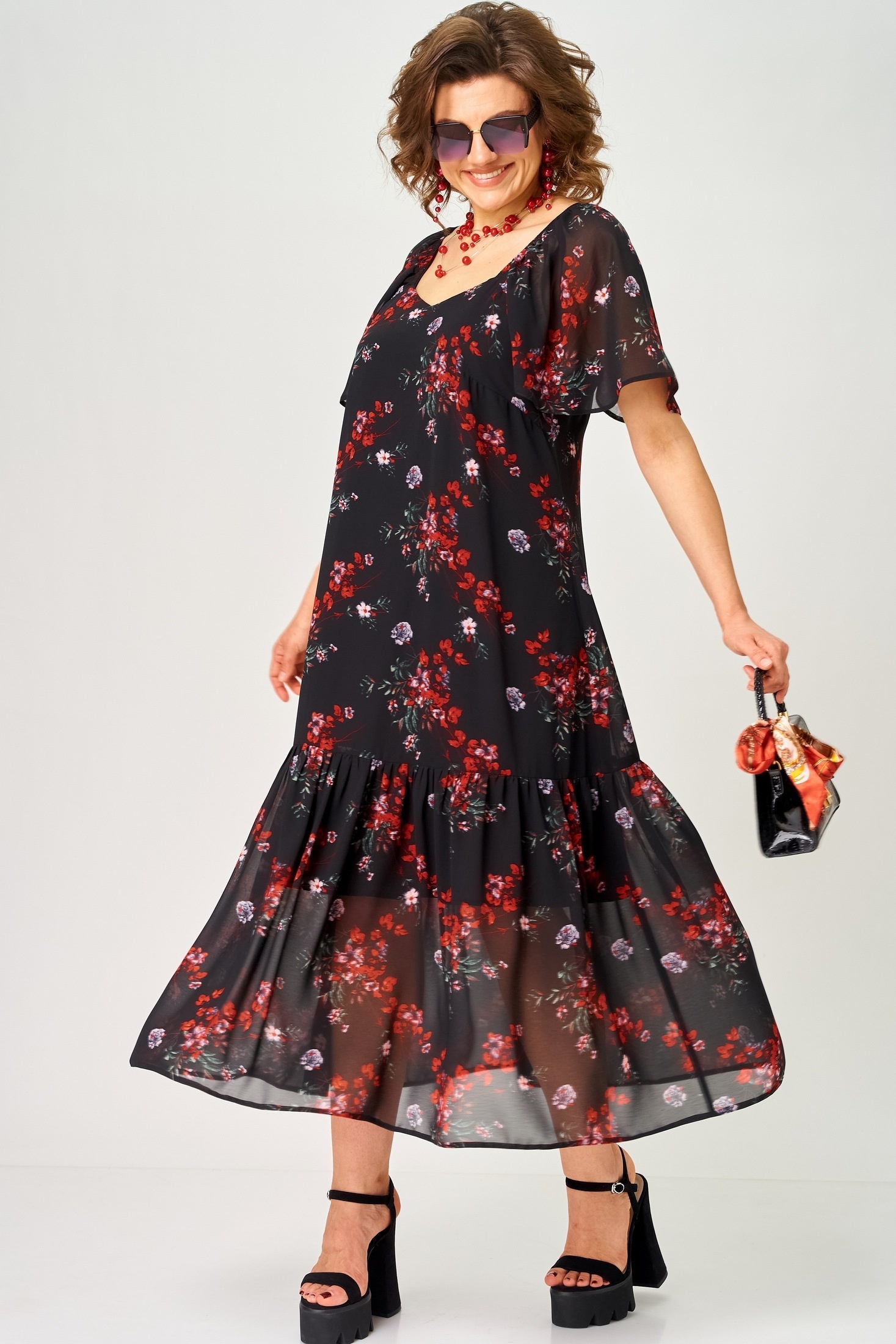 Платье 7246 принт цветочек EVA GRANT — это стильное и легкое платье, которое идеально дополнит ваш гардероб. Коллекция бренда EVA GRANT предлагает фасон полуприлегающего силуэта, расширяющегося к низу, выполненный из шифона с трендовым цветочным принтом. У платья фигурный вырез горловины и рукава «крылышко», добавляющие романтичности. Резинка на рукавах и нагрудные выточки обеспечивают отличную посадку. Широкий нижний волан со сборкой придает движению легкость. Это идеальный выбор для теплой весны и лета, подходящий как для повседневной носки, так и для праздников. Черный, с ярким флористическим принтом, он станет ярким акцентом в вашем образе.