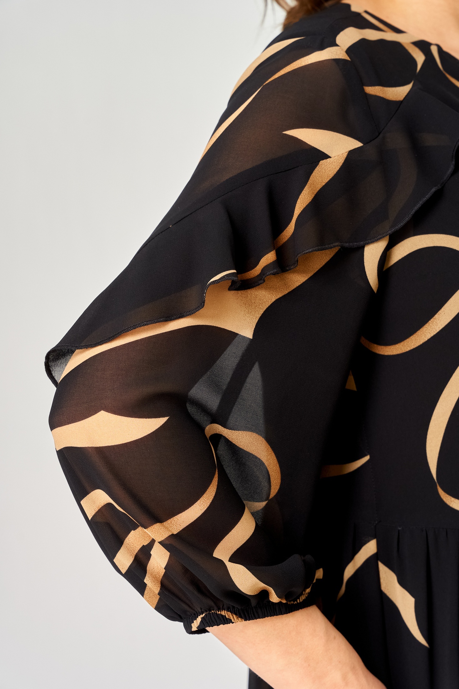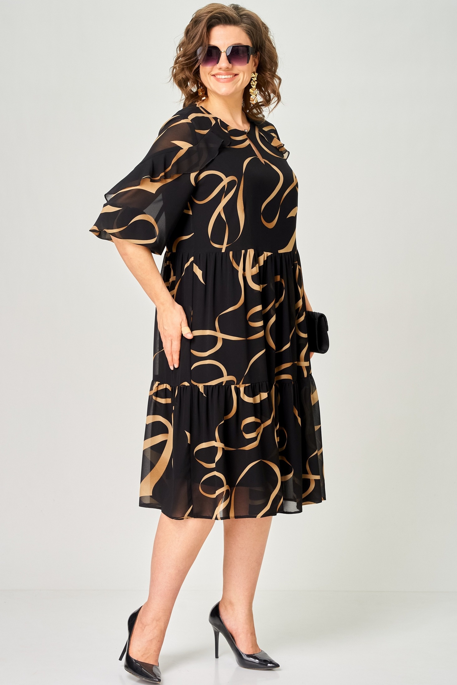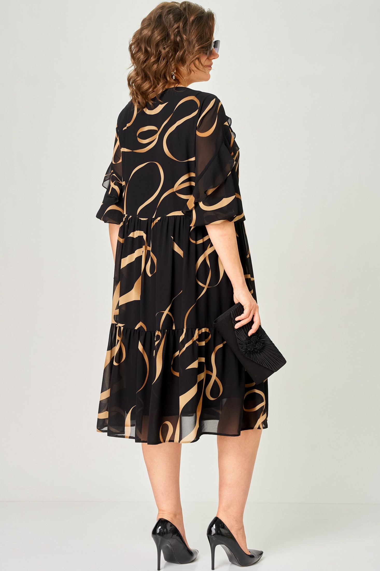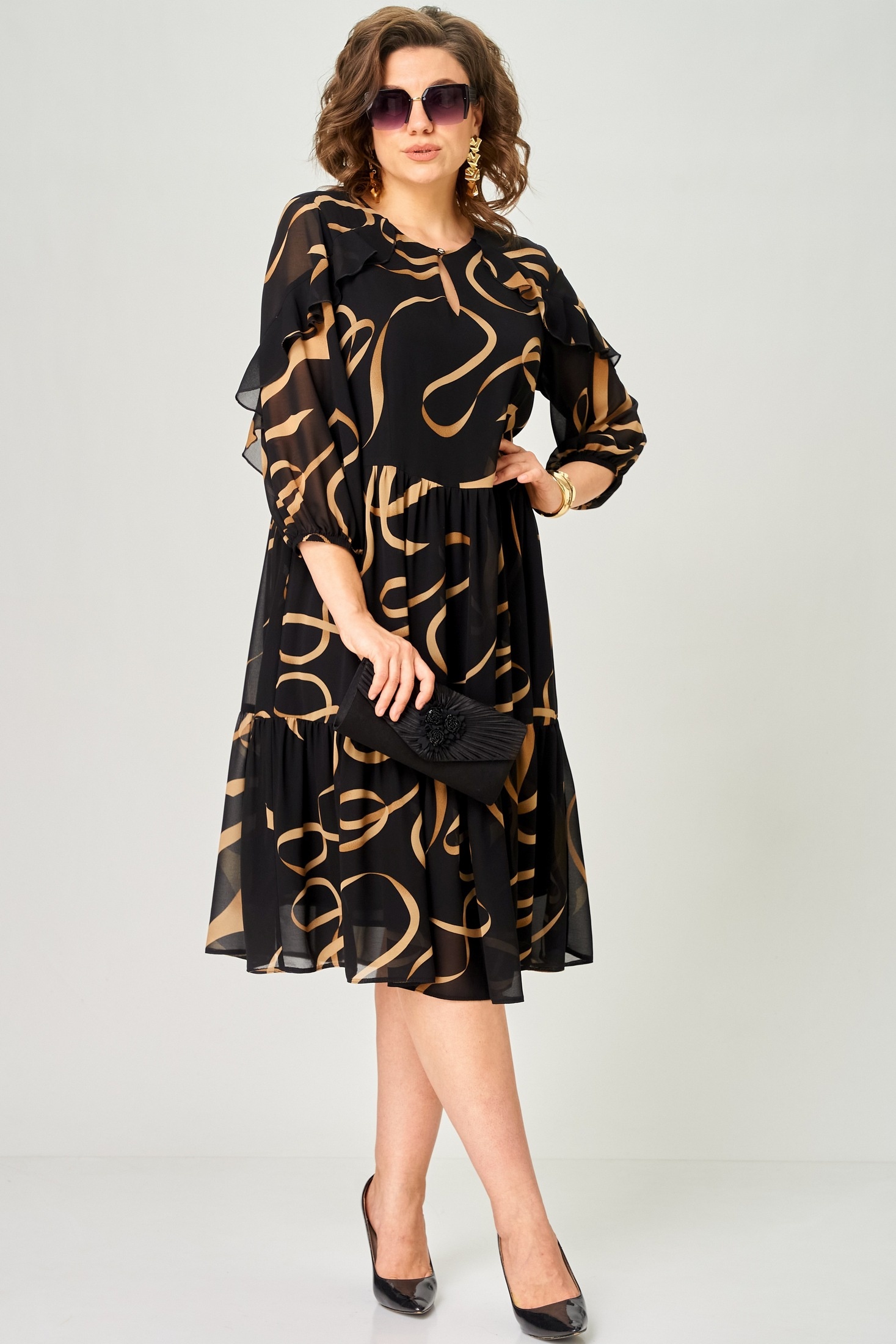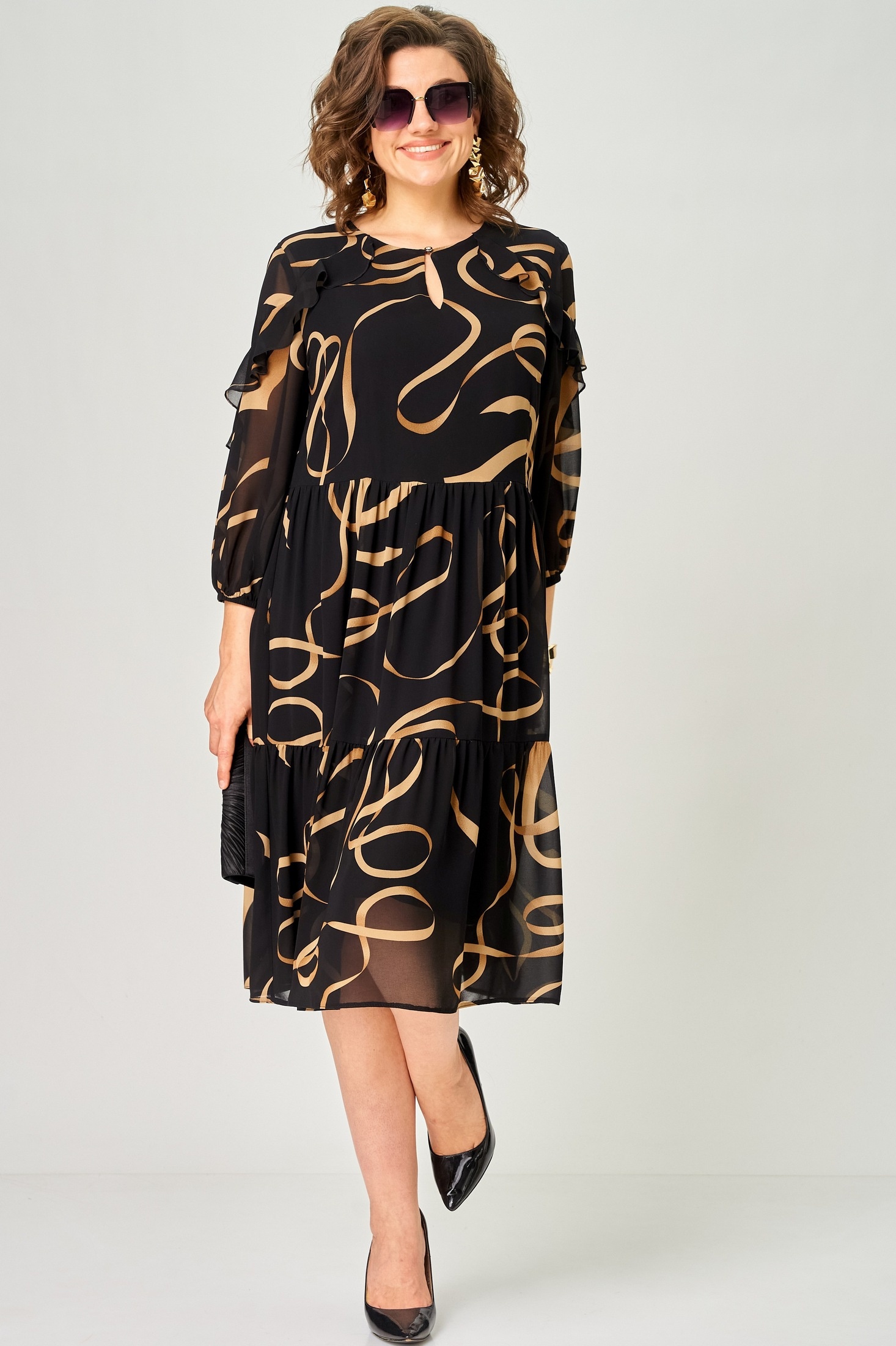 Платье 7281А принт ленты EVA GRANT — это истинное воплощение стиля и комфорта. Коллекция бренда EVA GRANT представляет изделие из легкого шифона с уникальным цветочным принтом, которое идеально подходит для теплой весны и лета. Прямой фасон и воланы добавляют игривости и легкости, создавая ощущение нежности. Длина рукава 3/4 с резинкой позволяет подстраивать под себя комфорт. Оптимально для повседневного использования и офисной среды благодаря универсальному черному цвету с лентами. Круглый вырез горловины с декоративной "капелькой" и застежкой на пуговицу обеспечивает удобство и стиль.