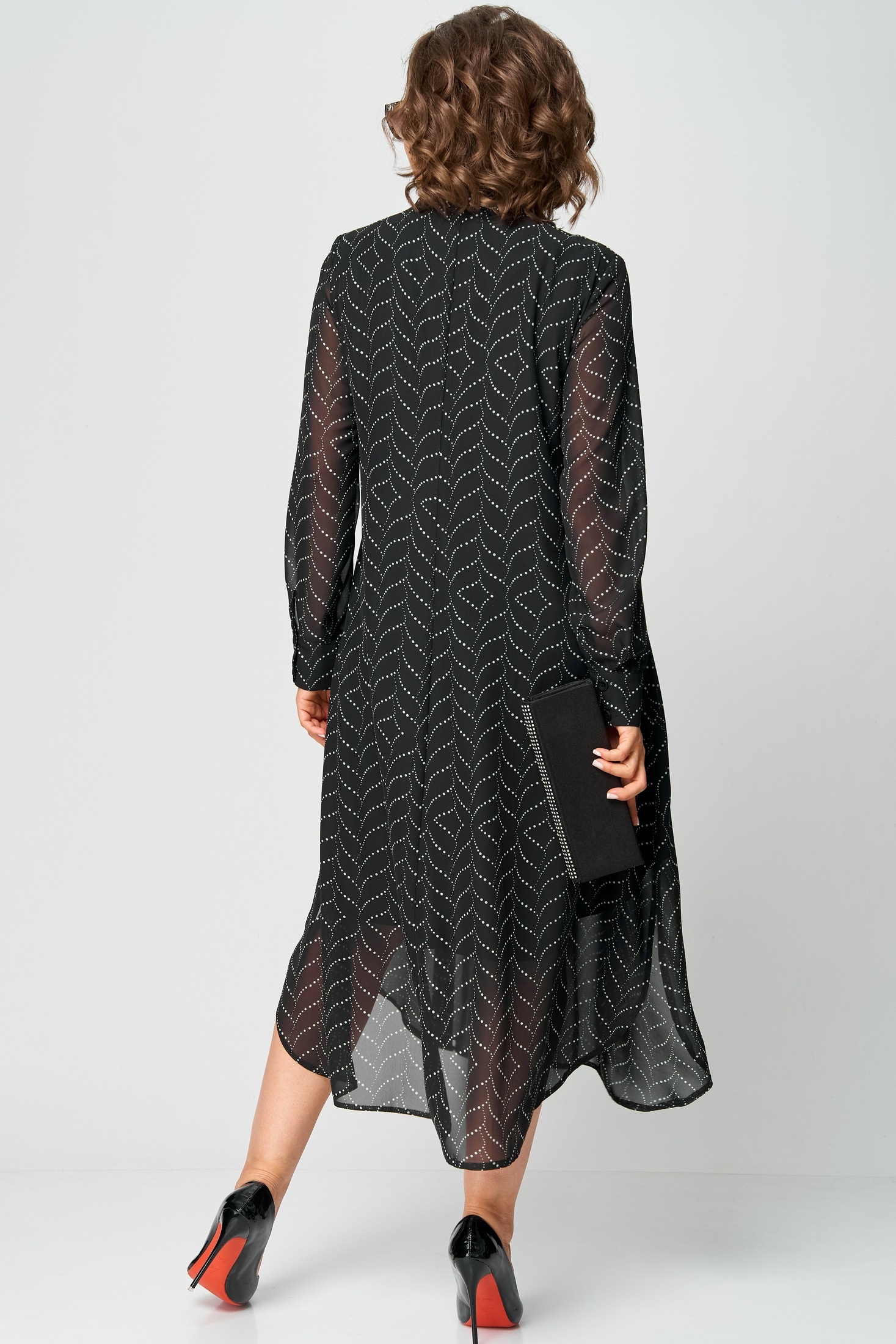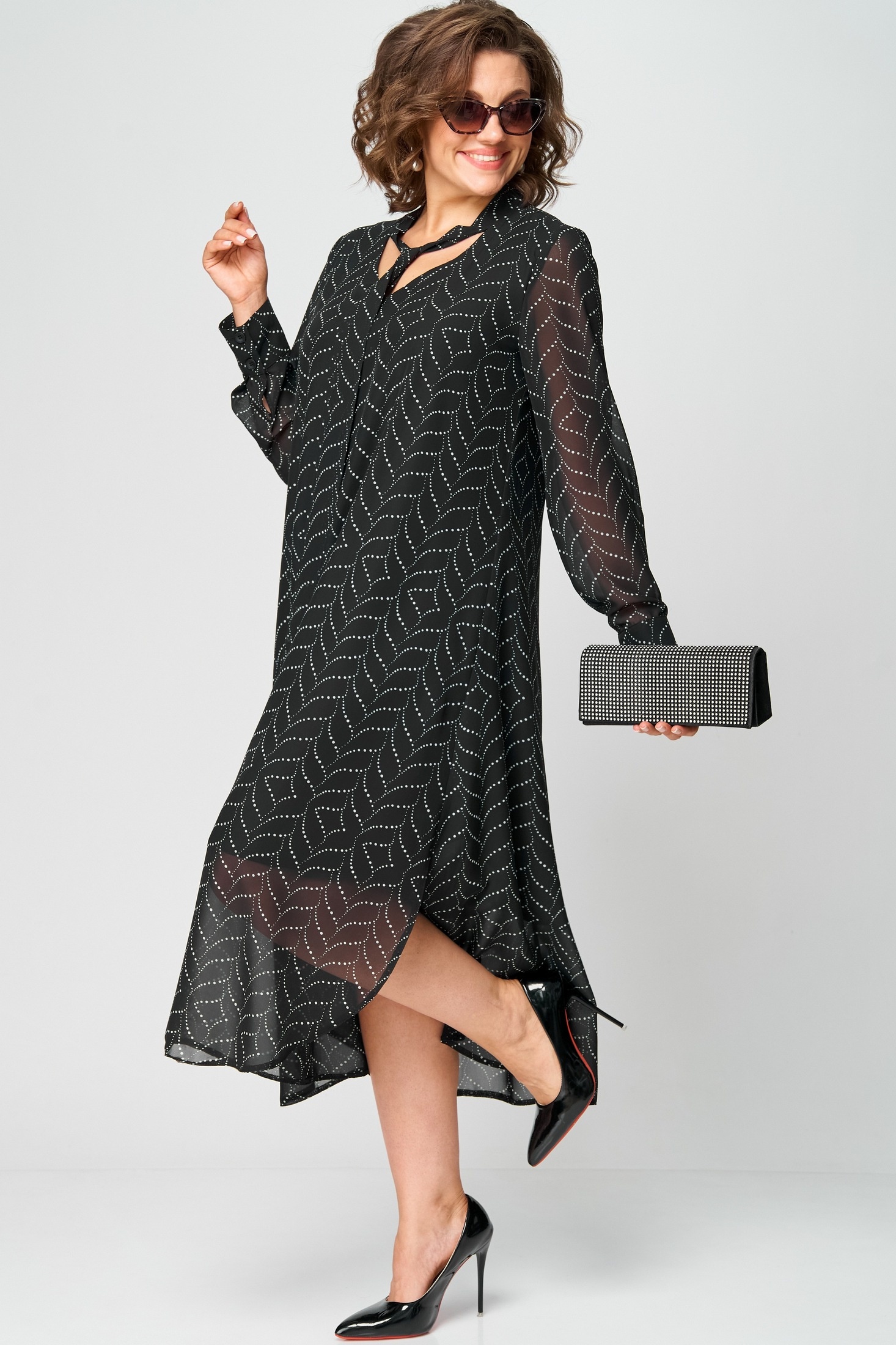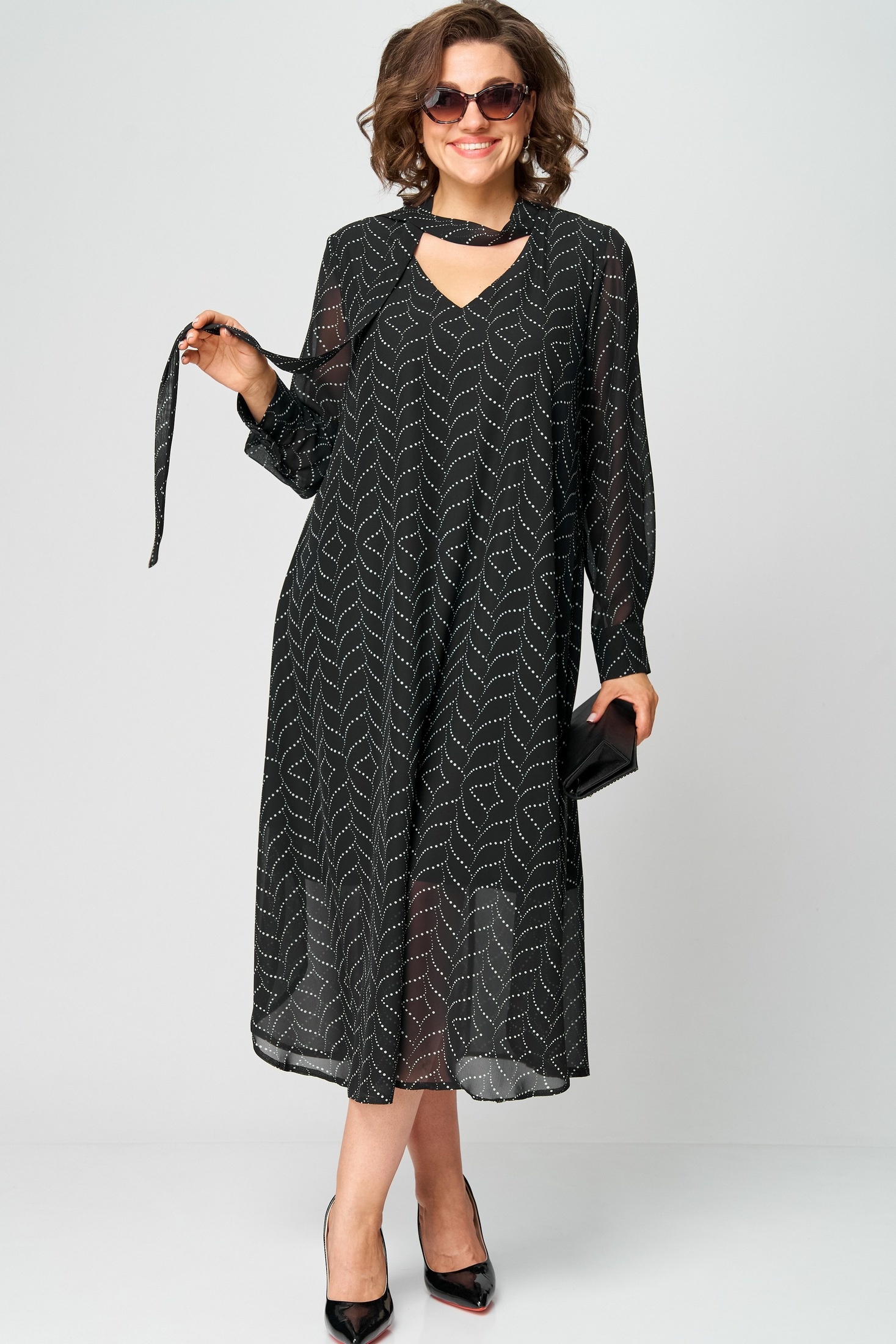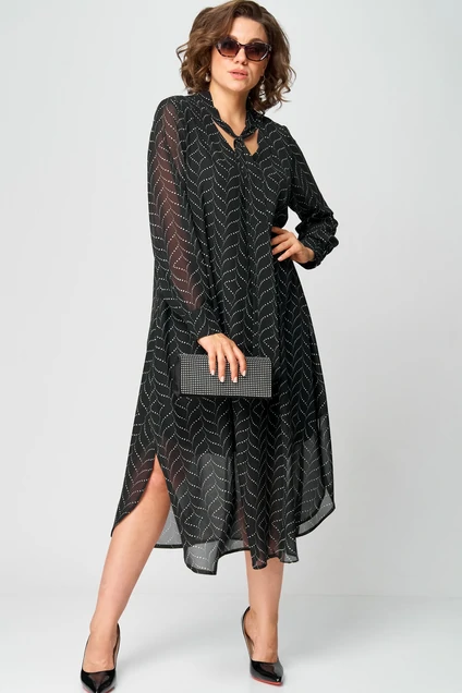 Платье 7293 черная абстракция EVA GRANT — это стильное и универсальное решение для повседневного и нарядного образа. Коллекция бренда EVA GRANT предлагает платье из креп-шифона, которое отличается легкостью и комфортом. Благодаря трикотажной подкладке платье удобно в носке. А-образный силуэт и V-образный вырез с вточной стойкой, переходящей в бант, добавляют изысканности. Длина миди и оригинальный принт делают его идеальным для любого сезона — от весны до осени. Платье черного цвета с абстрактным рисунком подходит для праздника или офиса.