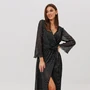 Лёгкое сияние волокон делает платье по-настоящему нарядным, но при этом универсальным: в нём одинаково эффектно выглядят и в повседневной обстановке, и на вечерних встречах. Удобная застёжка-молния на спинке завершает образ продуманной функциональностью.
