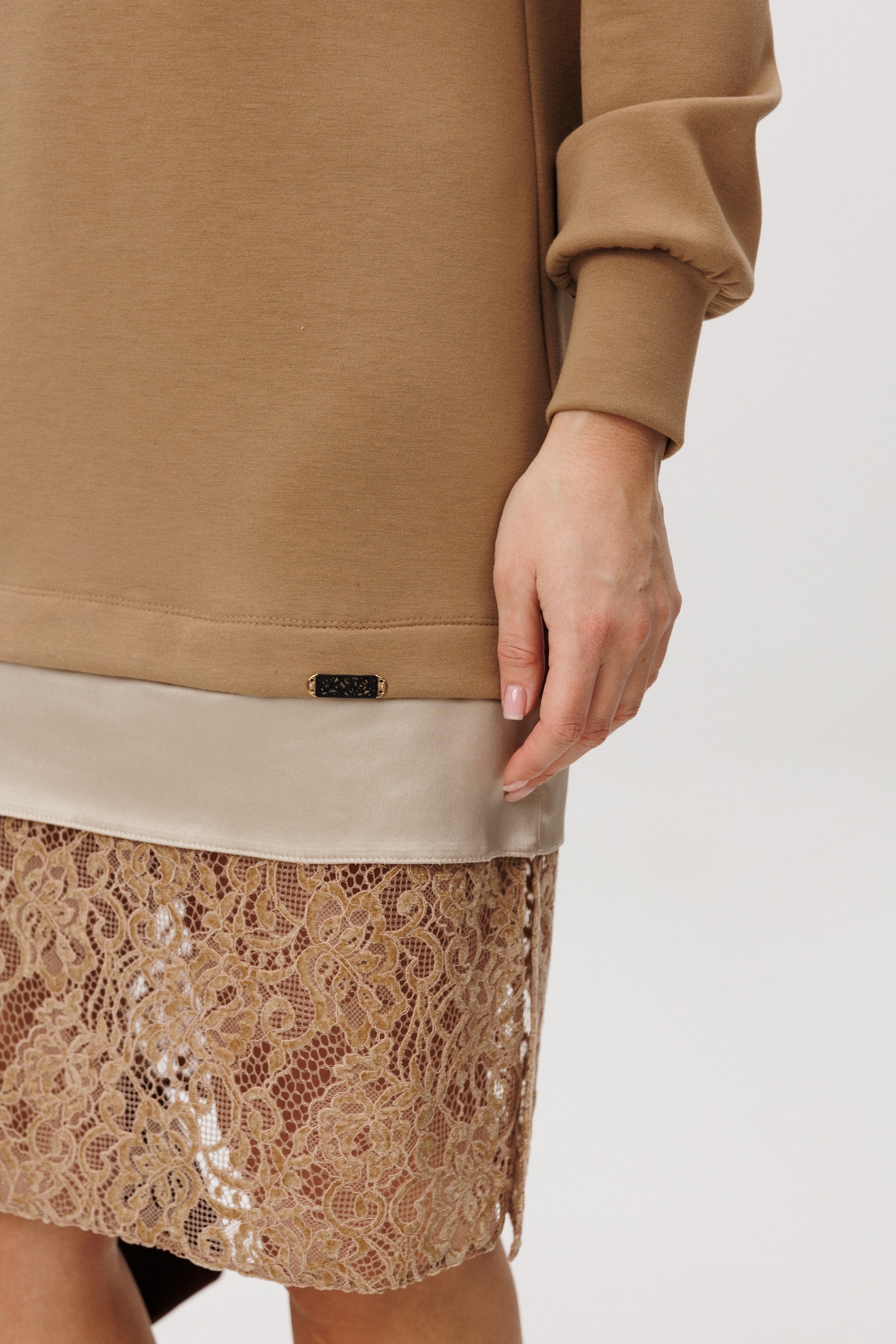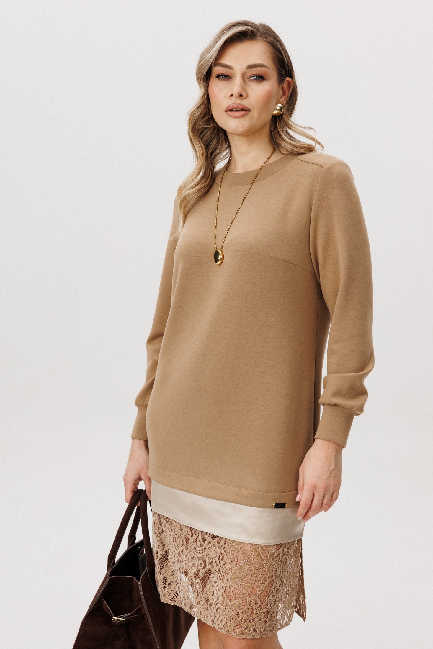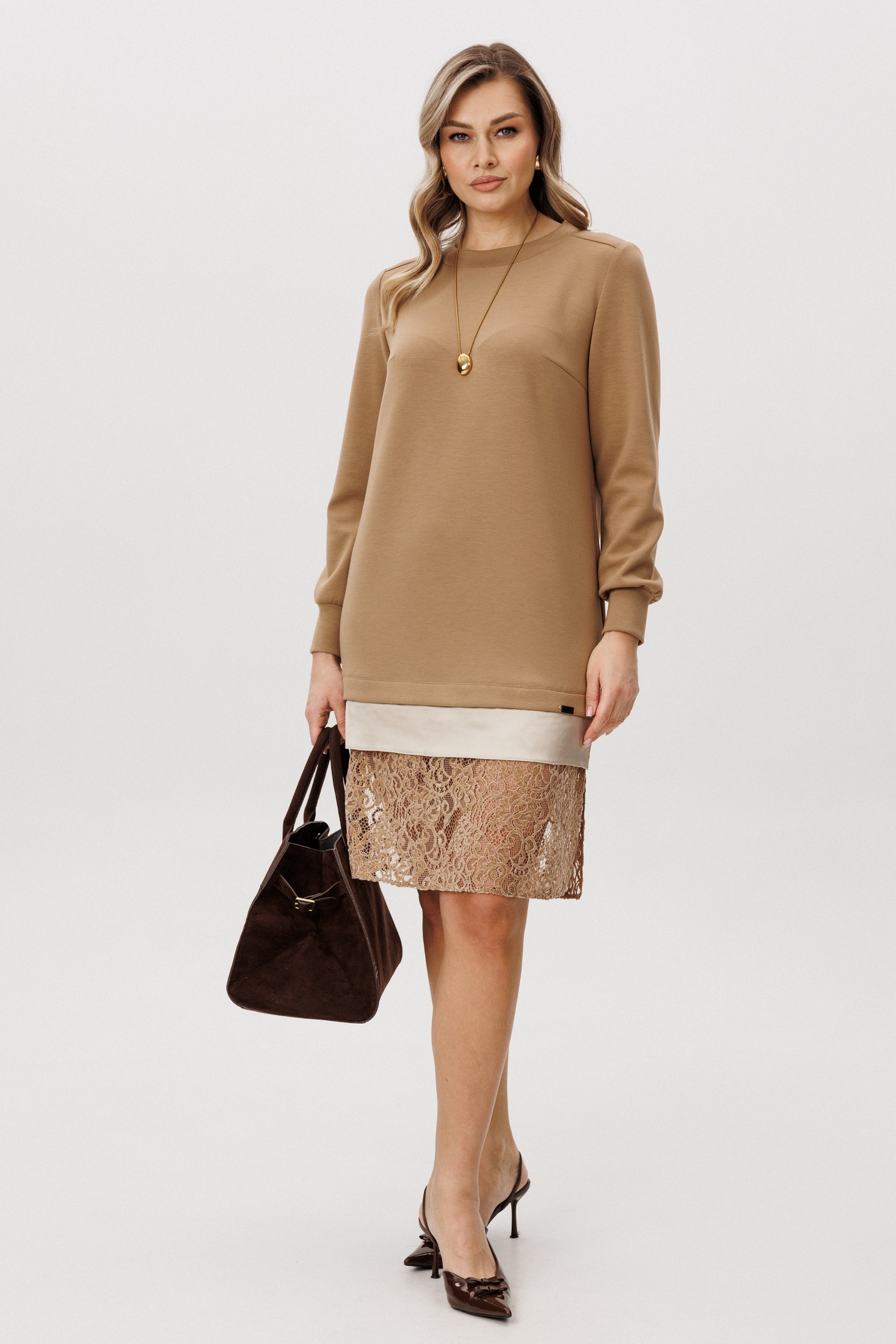 Платье 5380 FantaziaMod представляет собой уникальный комплект, сочетающий в себе архитектурный крой и комфорт. Коллекция бренда FantaziaMod выполнена из трикотажа с добавлением эластана, что обеспечивает мягкость и пластичность материала. Комплект включает в себя стильную куртку с капюшоном и асимметричной застежкой на молнию, подчёркивая современный городской стиль. Бежевый топ с кружевной отделкой по нижнему краю добавляет женственность. Брюки с эластичным поясом и эффектными подрезами подходят для повседневного ношения, обеспечивая свободу движений. Этот городской комплект идеально подходит для межсезонья и осени, прекрасно вписывается в casual-гардероб.