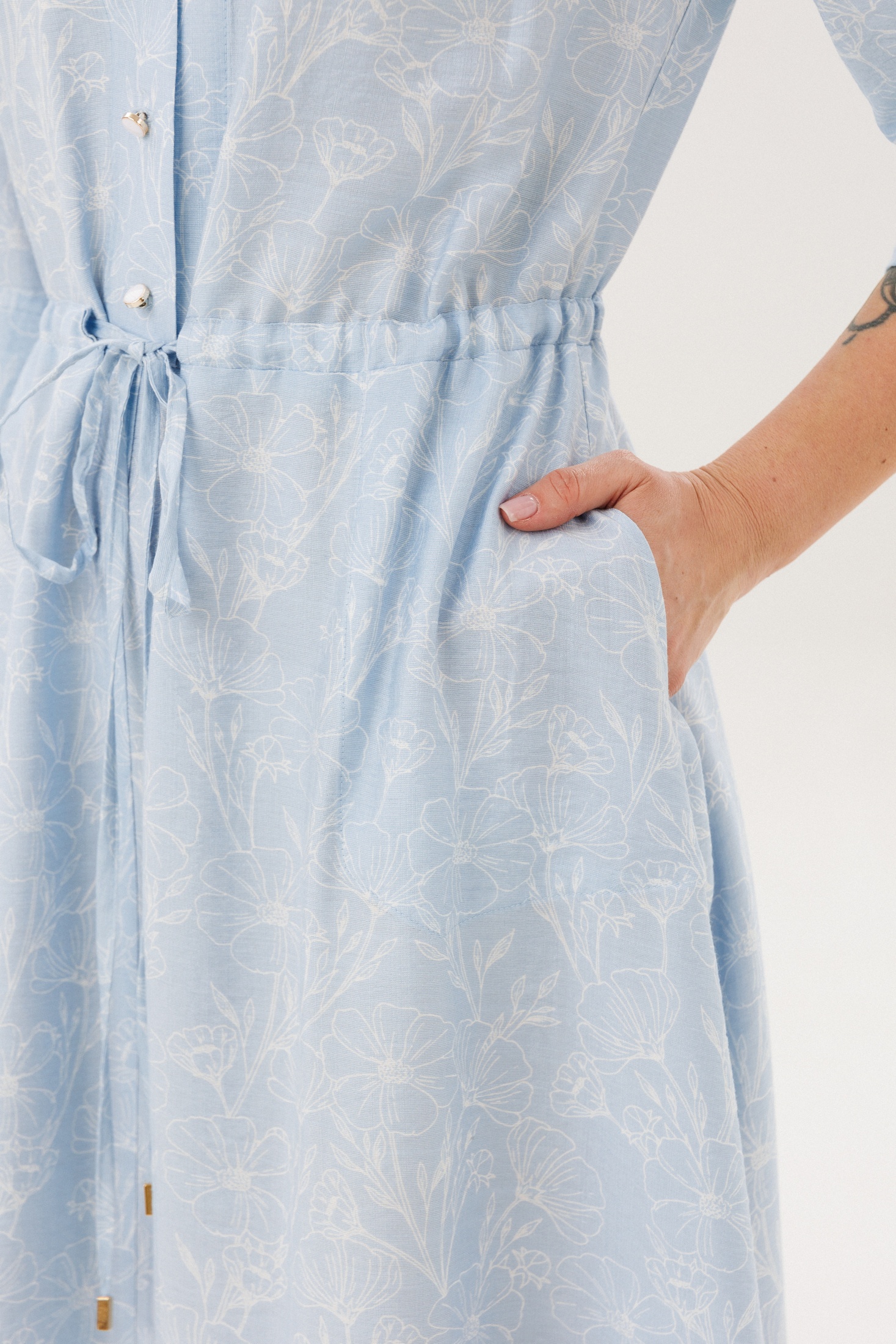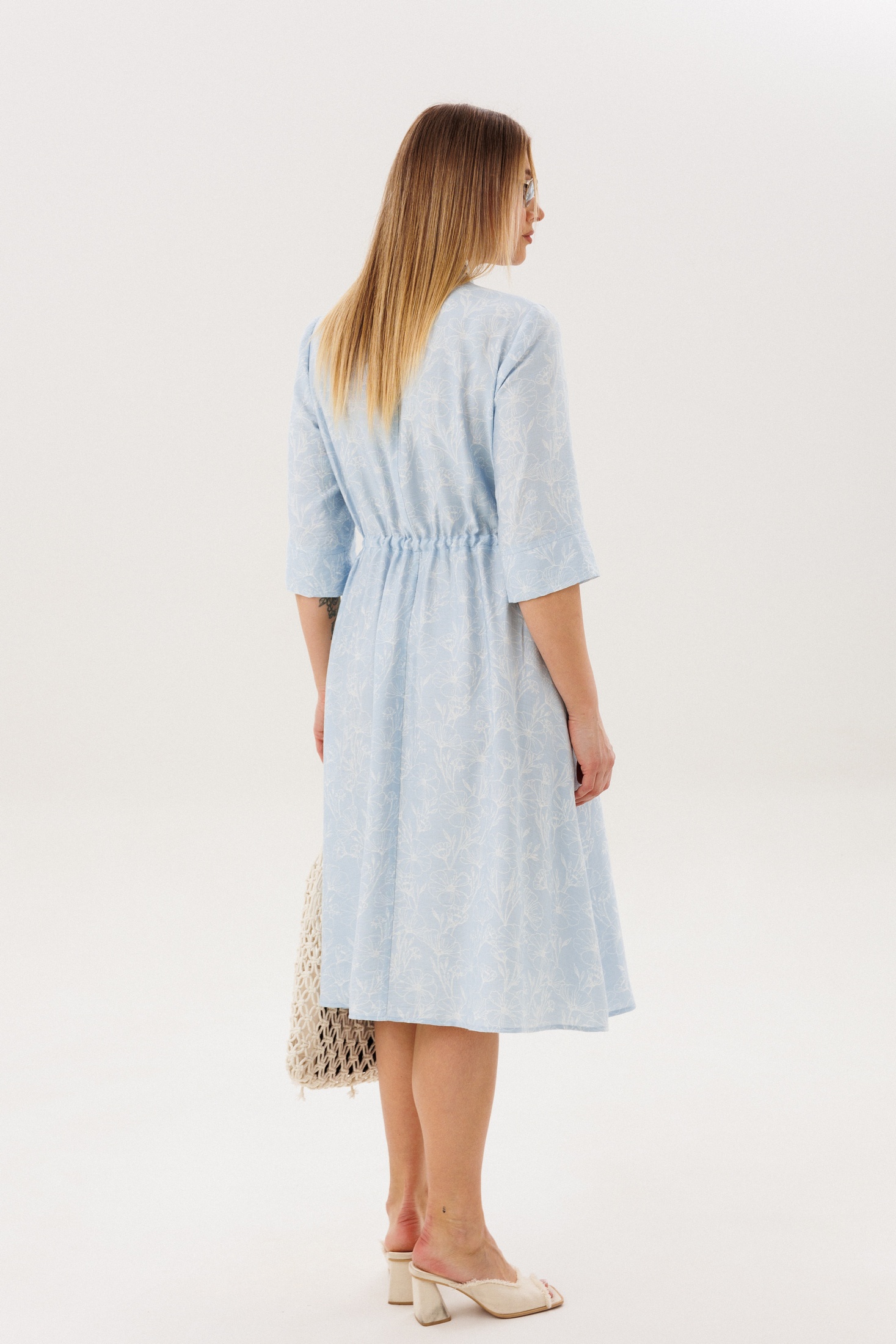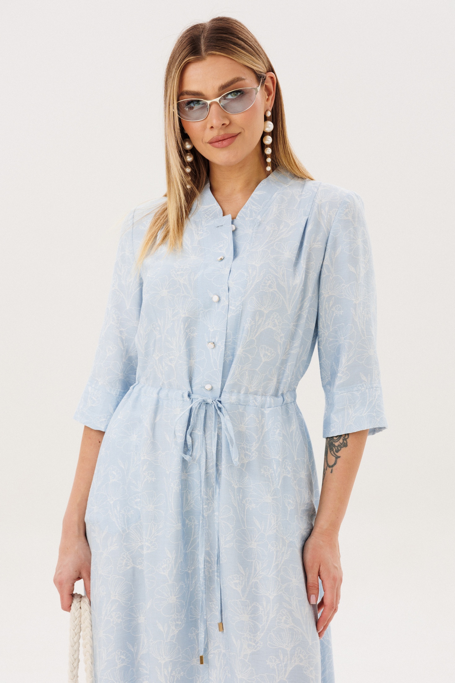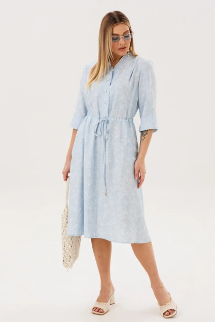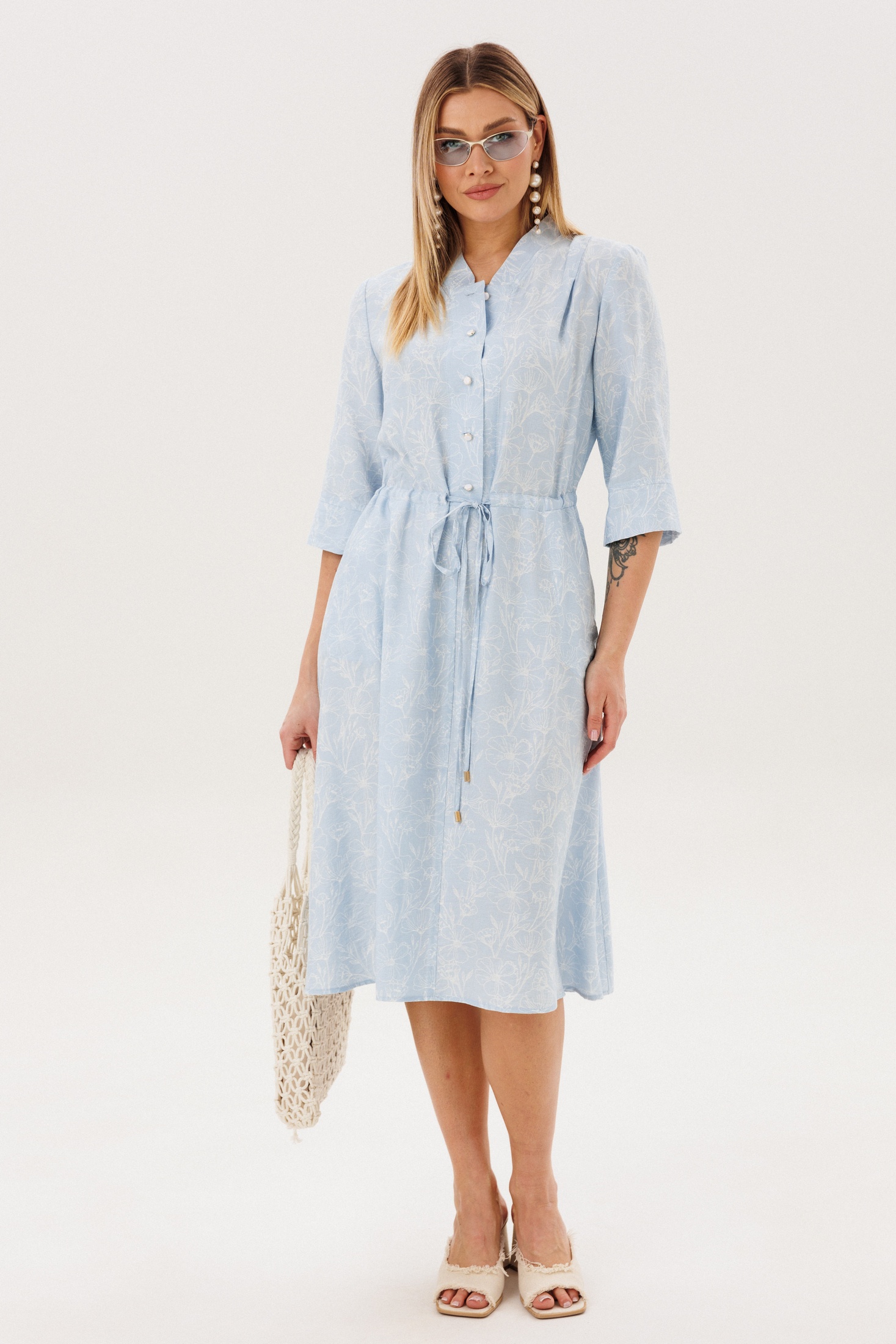 Платье 5430 FantaziaMod — это воплощение комфорта и стиля в летнюю пору. Коллекция бренда FantaziaMod предлагает изделие из вискозы, которая обеспечивает дышащие свойства и мягкость на коже. Полуприлегающий силуэт с отрезным лифом и конической юбкой длиной до колена создают гармоничный образ. Центральная застёжка на пуговицы и втачной воротник добавляют изысканности, а кулиска на талии позволяет регулировать прилегание. Задняя часть украшена декоративной нашивкой, а боковые карманы делают модель практичной. Небесно-голубой цвет с цветочным узором подчеркивает свежесть образа. Рукава длиной около 40 см завершаются мягкой манжетой. Платье идеально подходит для летних прогулок, деловых встреч или лёгких вечерних мероприятий. Общая длина изделия составляет 112 см.