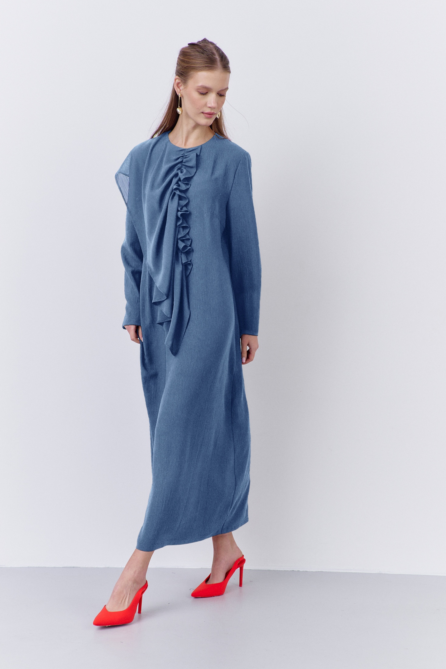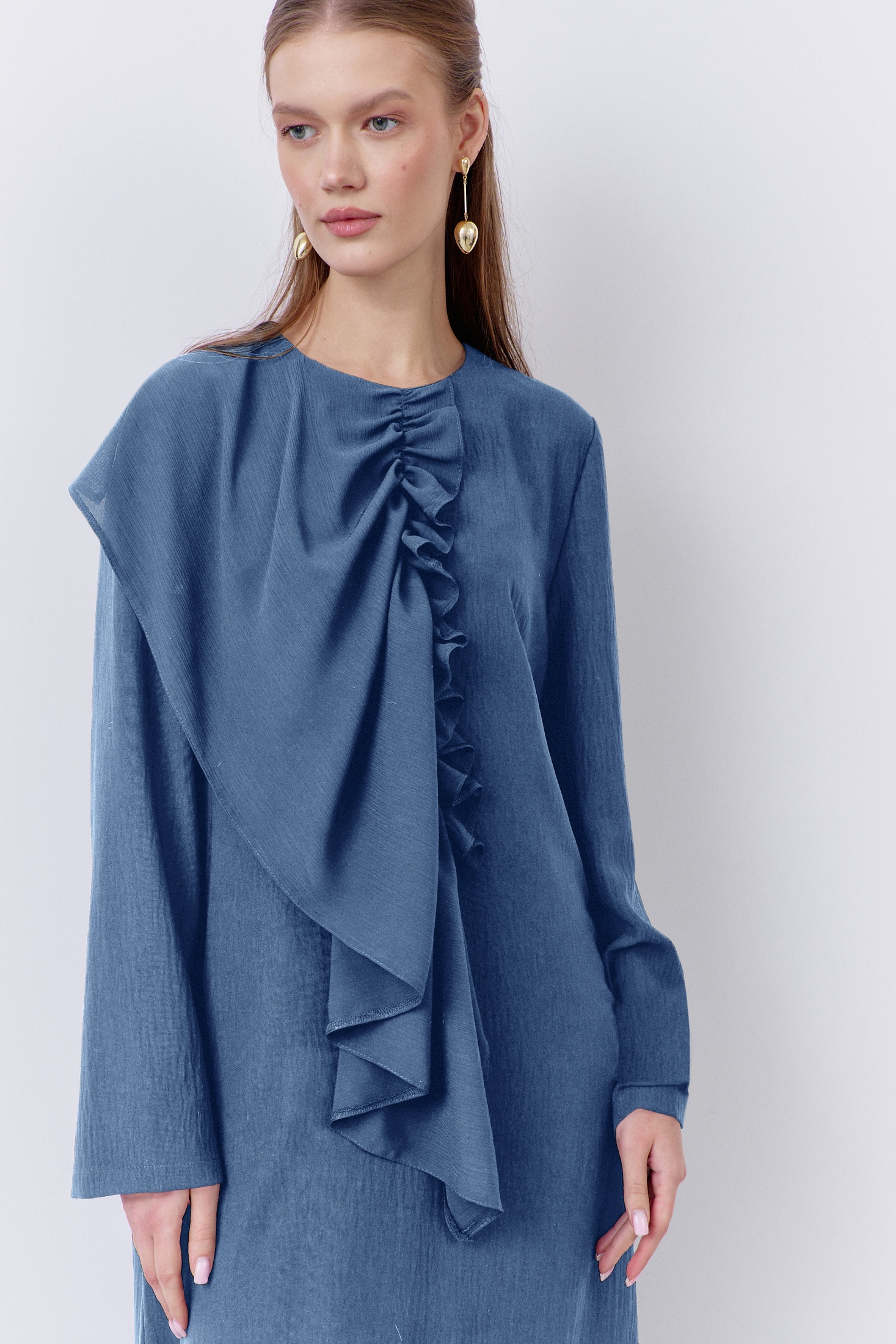 Платье 2067-02 синий джинс FLAIM превосходно сочетает в себе стиль и комфорт. Коллекция бренда FLAIM представлена изделием из плательной ткани в насыщенном синем оттенке, напоминающем джинс. Прямой силуэт с декоративным элементом из шифона по переду добавляет динамики и интереса образу. Застежка-молния по спинке обеспечивает удобную посадку. Платье идеально подходит для весенне-осеннего сезона, предлагая стильное решение для повседневных выходов и рабочих будней. Его универсальность позволяет носить на работу или в свободное время, подчёркивая индивидуальность и внимание к деталям.
