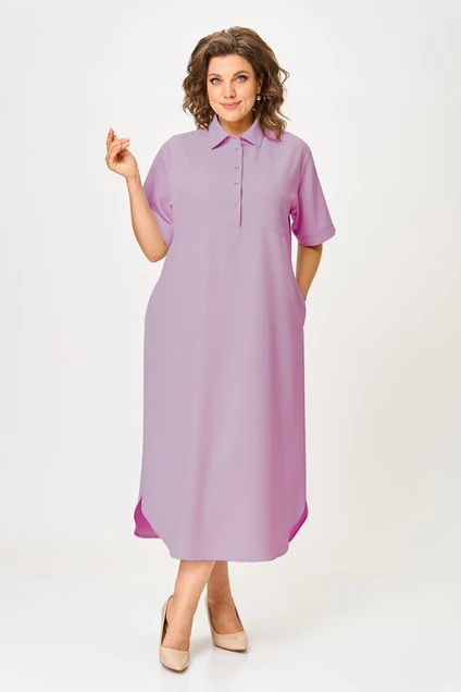 Платье 1670 сирень Fortuna от Шан-Жан — это идеальный выбор для любителей комфорта и стиля. Коллекция бренда Шан-Жан предлагает это платье из ткани льна вишер, которое обеспечит легкость и комфорт в теплые летние дни. Прямой силуэт и расклешенный низ платья делают его идеальным для повседневной носки. Рубашечный воротник на стойке и планка с застежкой на пуговицы добавляют элегантности, а боковые карманы — функциональности. Платье выполнено в привлекательном сиреневом цвете, длина которого по центру спинки составляет 127 см. Короткие рукава с манжетой делают это платье идеальным вариантом для летнего сезона.