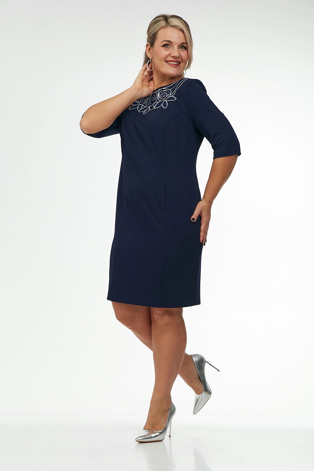 Платье 558 Fortuna от бренда Шан-Жан – это стильный выбор для осенне-зимнего сезона. Коллекция бренда включает полуоблегающее платье из мягкого трикотажа, обеспечивающего комфорт и уют. Особенностью модели являются рельефы и декоративная отделка у горловины, которые добавляют изысканности. Сзади находится молния и шлица для удобства движений. Рукав 3/4, что делает платье универсальным для различных погодных условий. Длина по спинке составляет 97 см, что идеально для делового и повседневного стиля. Платье представлено в классическом тёмно-синем цвете, подходящем для офиса и неформальных мероприятий.