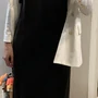 Элегантное платье миди черного цвета, выполненное из мягко струящейся ткани, создаст непревзойденный образ для вечернего выхода или особого события. Модель обладает тонкими регулируемыми бретелями, которые подчеркнут изящество плеч и добавят комфорта при носке. Особенностью данного наряда является изящная молния в боковом шве, обеспечивающая удобное надевание.