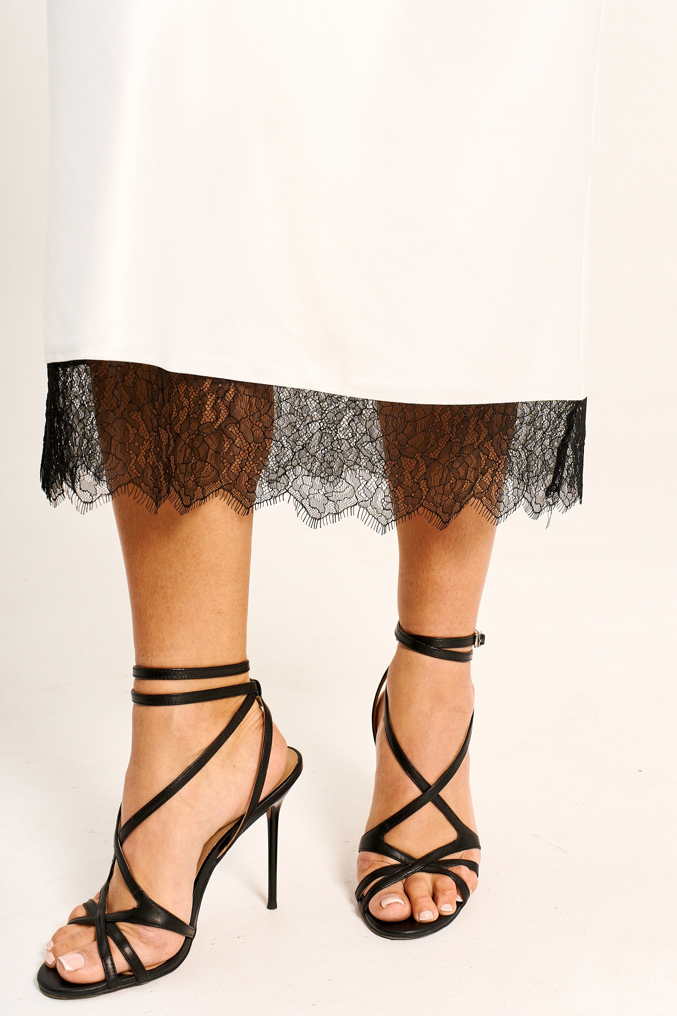 Платье - миди прилегающего силуэта выполнено из струящегося шелк - сатина на регулируемых бретелях и молнией в боковом шве. Подрезы по линии груди и низу платья дополнены мягким французким кружевом, которое держит форму. Платье полностью соответствует заявленному размеру. Пожалуйста, пользуйтесь таблицей замеров готового изделия, чтобы подобрать идеальный размер. Уход за платьем: - при стирке в стиральной машине выбрать бережный либо деликатный режим; -температура воды не выше 30 градусов. ( платье прошло тестовую стирку не линяет).
