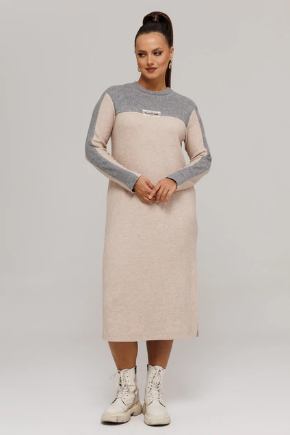 Данное трикотажное платье выполнено из двух видов ткани разных фактур-фактурного трикотажа и вязки, что создаёт уникальный стиль.
