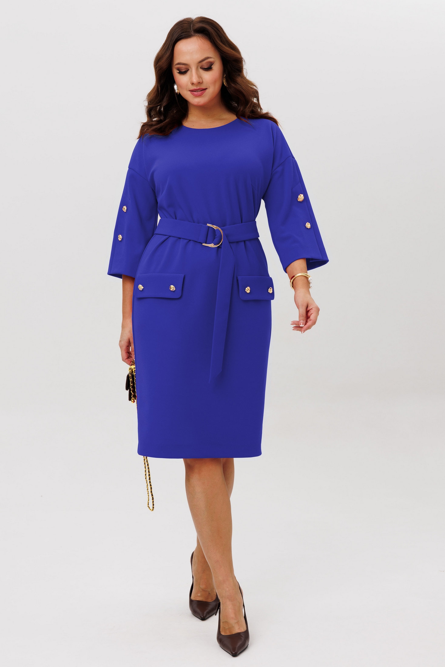 Нарядное платье из трикотажного крепа с мелким блеском станет прекрасным выбором для вечерних мероприятий,корпоративных встреч и праздничных торжеств.Особенностью этого стильного платья является его прямая модель ,которая подчеркивает женстсвенность и элегантность.Платье подходит для полных женщин. Платье прямого силуэта с нагрудными вытачками.Рукав спущенный с декоративной шлицей и пуговицами. Декором платья являются клапаны  и пуговицы.Пояс эффектно подчеркивает талию.
