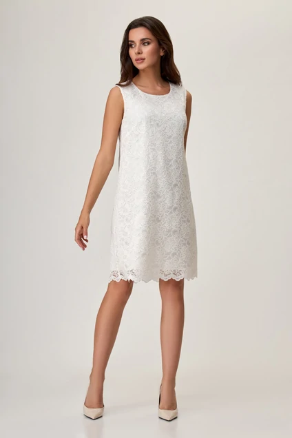 Платье прямого силуэта с круглым вырезом горловины. Перед с нагрудными вытачками из бокового шва. Платье на подкладке.Длина изделия по спинке 91 см.