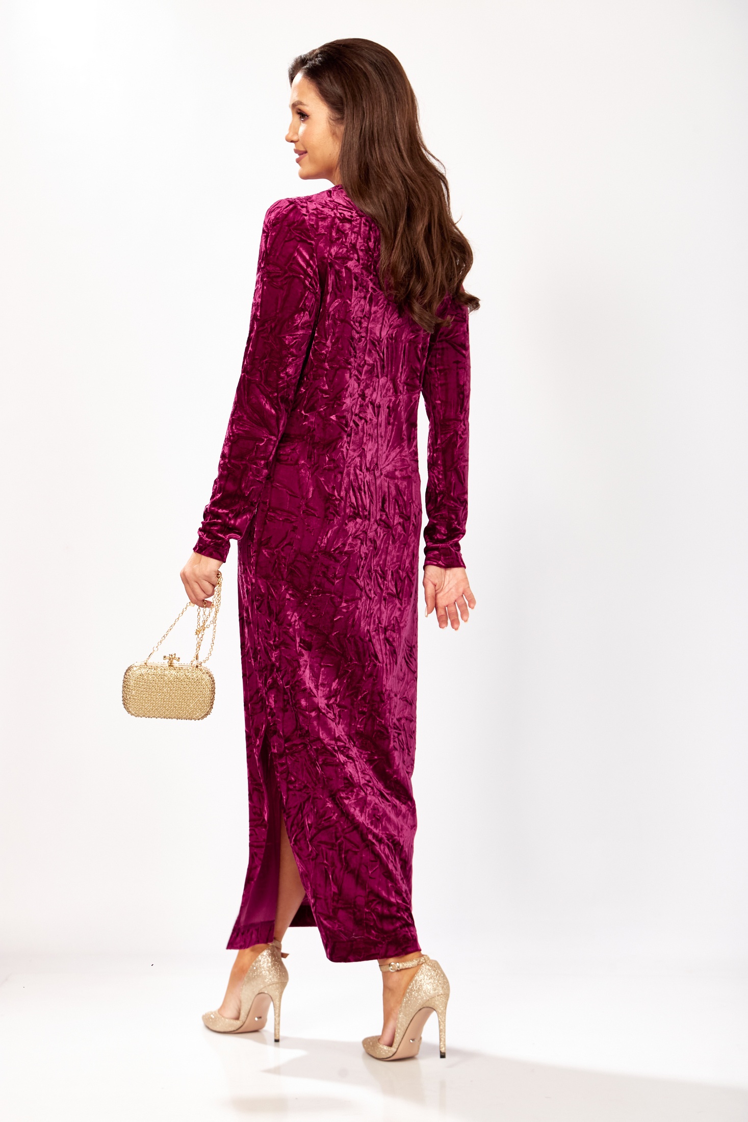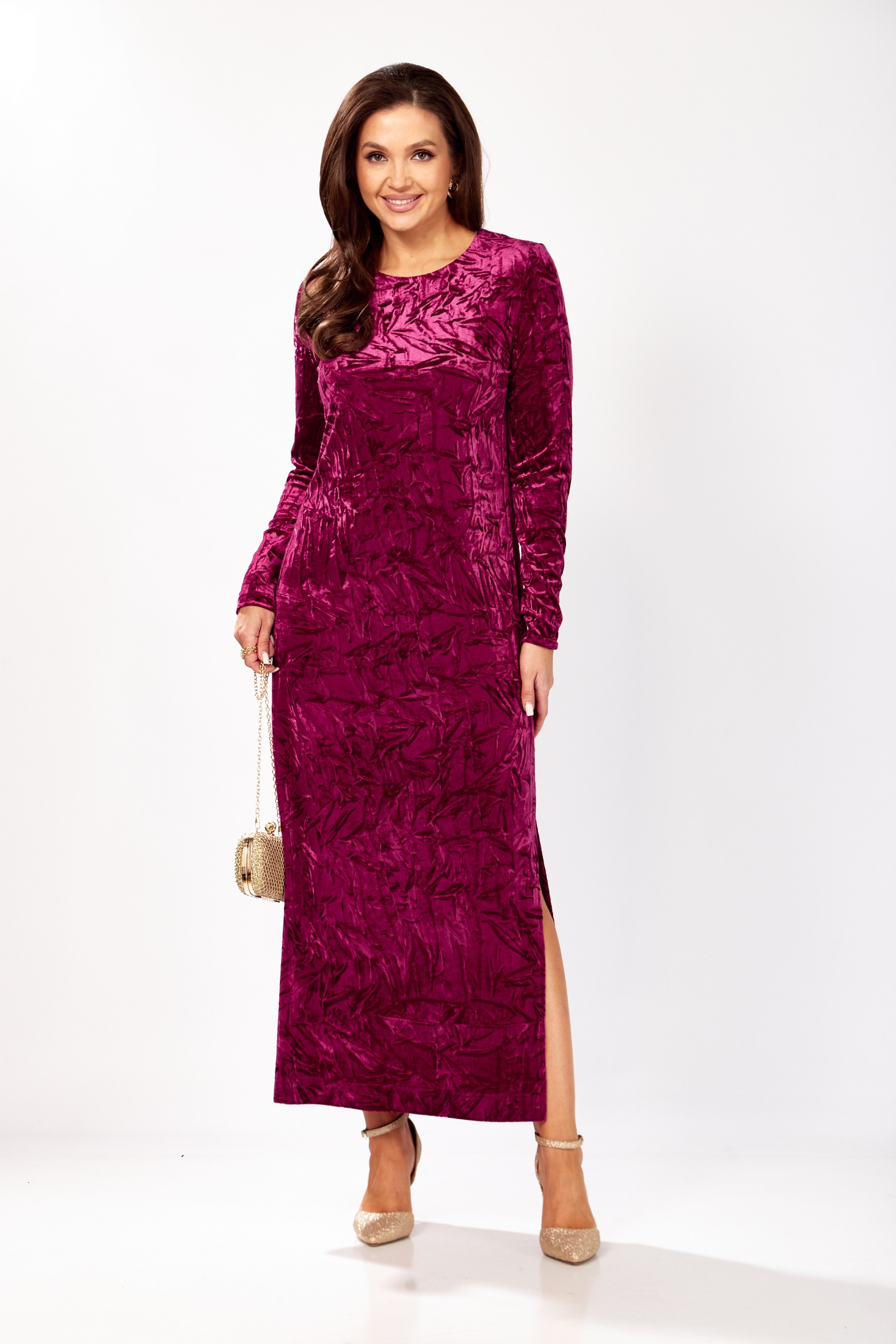 Элегантное длинное платье из мягкого бархата насыщенного бордового цвета идеально подходит для торжественных мероприятий. Модель прямого силуэта подчеркивает фигуру, сохраняя при этом утонченность и изысканность. Рукав втачной одношовный, длинный, что добавляет консервативности и благородства. Застежка-капелька на петлю и пуговицу по спинке обеспечивает легкость надевания и снимания платья. Изысканный боковой разрез способствует свободе движений и дополняет образ изящной ноткой. Длина платья составляет 136 см, а длина рукава — 66 см, что идеально обрамляет силуэт и подчеркивает изящество образа.