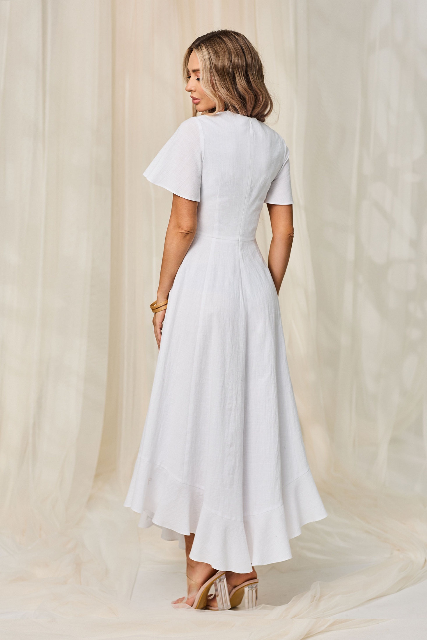 Платье 44299 белый Golden Valley — это стильное летнее решение для вашего гардероба. Коллекция бренда Golden Valley сочетает в себе легкость и изящество хлопка с элегантными кружевными вставками. Прямое платье миди длины с V-образным вырезом и потайной молнией на спинке подчеркивает фигуру созданием акцента на талии. Короткие рукава-крылышки добавляют нотку кокетства, превращая это платье в идеальный выбор для теплого сезона. Белый цвет придает модели свежесть и универсальность, делая её подходящей как для повседневной носки, так и для особых случаев. Это платье излучает простоту и утонченность, соответствуя последним тенденциям моды.