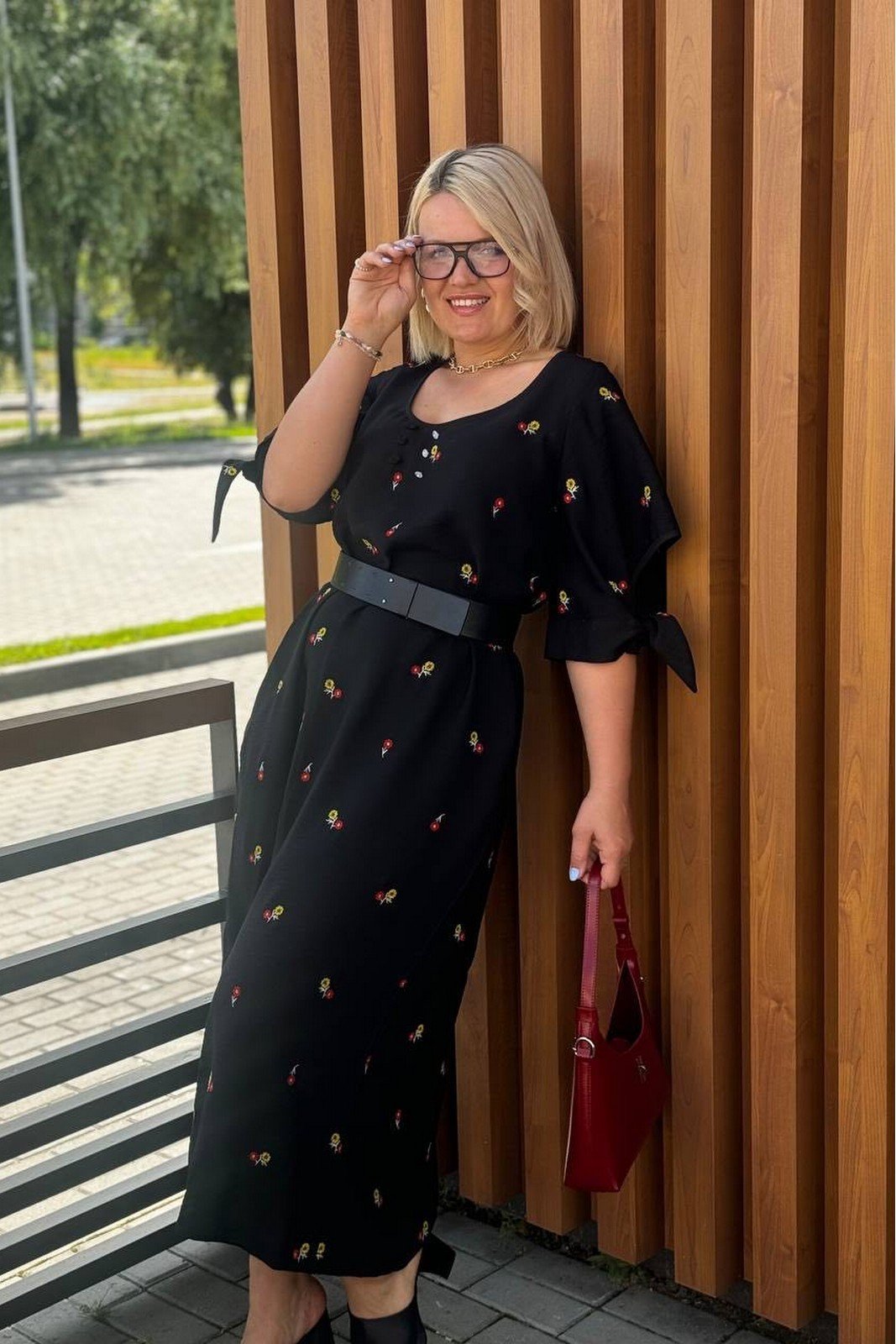Стильное платье из легкой приятной ткани в минималистичном дизайне станет отличным решением для теплых дней. Модель отличается удобным прямым силуэтом, округлым вырезом горловины и оригинальными рукавами с декоративными завязками. #nbsp;Свободный силуэт подходит для любого типа фигуры, а разрез добавляет лёгкости образу и делает комфортными движения. Практичные карманы делают платье ещё более функциональным. Это универсальный выбор для прогулок, отдыха или встреч, который подчеркнёт ваш безупречный вкус и обеспечит комфорт. Платье отлично комбинируется с обувью на плоской подошве и аксессуарами (ремень в продажу не входит).