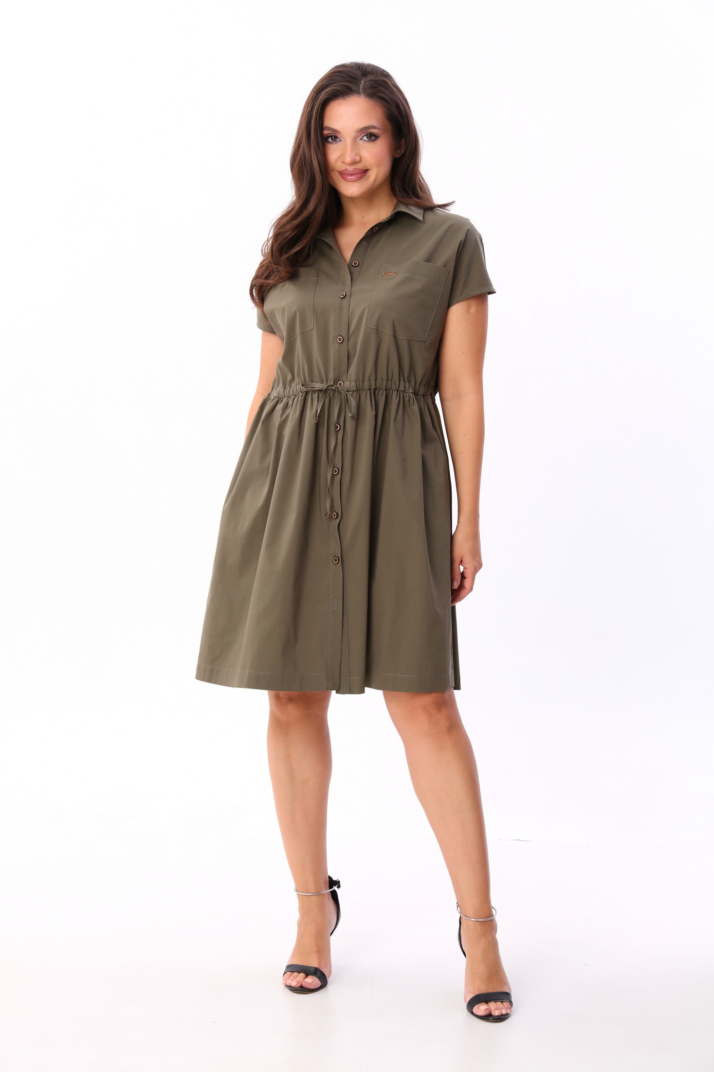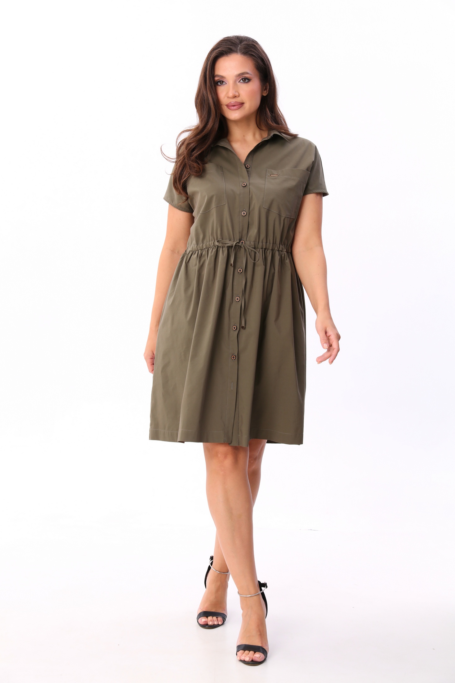 Платье 25ICY086 хаки ICY Street — это воплощение утилитарной эстетики и современного стиля. Коллекция бренда ICY Street совмещает в себе комфорт и универсальность. Платье выполнено из плотной плательной ткани, содержащей хлопок, полиамид и эластан, что обеспечивает его форму и комфорт в носке. Безрукавная модель с проймой аккуратно окантованной, отрезная по талии и дополненная кулисой с завязкой для регулирования посадки. Спущенная линия плеча придает изделию расслабленный характер. Платье оснащено практичными накладными и функциональными боковыми карманами. Воротник рубашечного типа на стойке и центральная застежка на пуговицах подчеркивают стиль. Подходит для осени и весны, идеально для повседневной носки и для работы. Цвет хаки добавляет универсальности и стильности вашему образу.