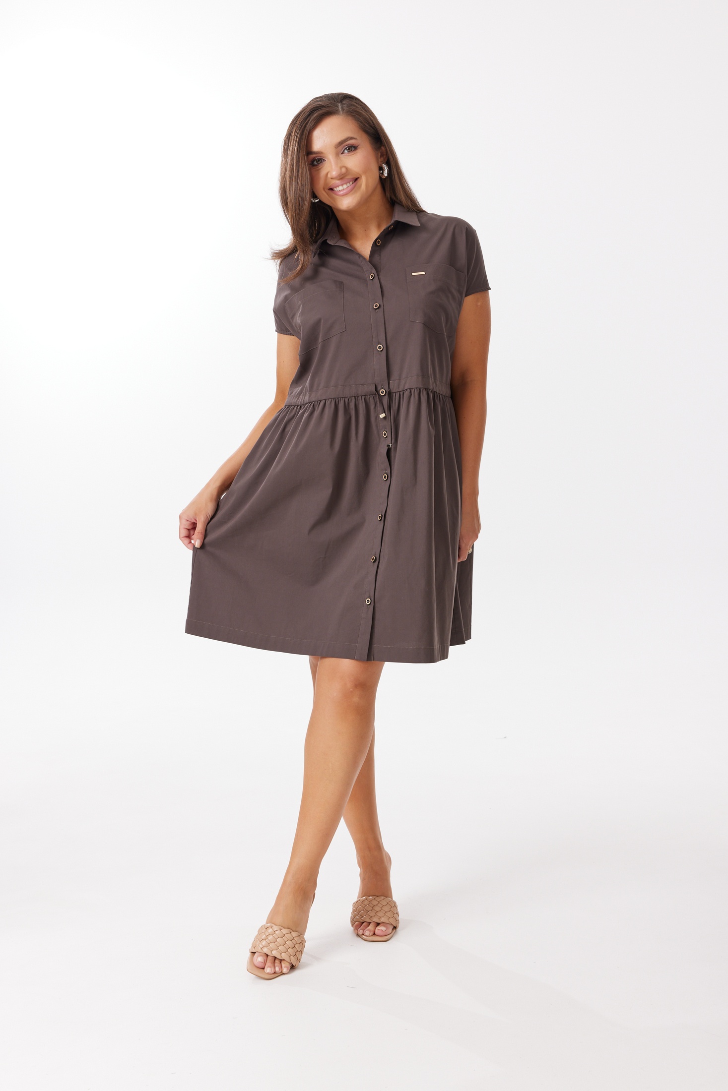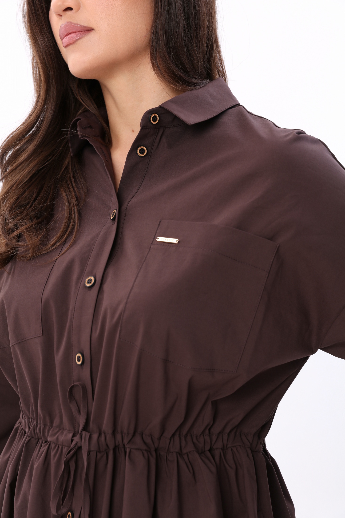 Платье 25ICY086 шоколад ICY Street — современное решение для ценителей утилитарного стиля. Коллекция бренда ICY сочетает в себе комфорт и продуманную конструкцию. Плотная плательная ткань, в состав которой входят хлопок, полиамид и эластан, обеспечивает изделию отличную форму и комфорт в носке. Прямой силуэт oversize украшен накладными карманами с декоративными элементами, а кулиса с завязкой на талии позволяет регулировать посадку. Спущенная линия плеча и воротник рубашечного типа на стойке придают модели особый характер. Шоколадный цвет и длина изделия по спинке 105 см делают платье оптимальным выбором для любого сезона года. Оно идеально подойдёт для повседневных образов, а также для прогулок и отдыха.